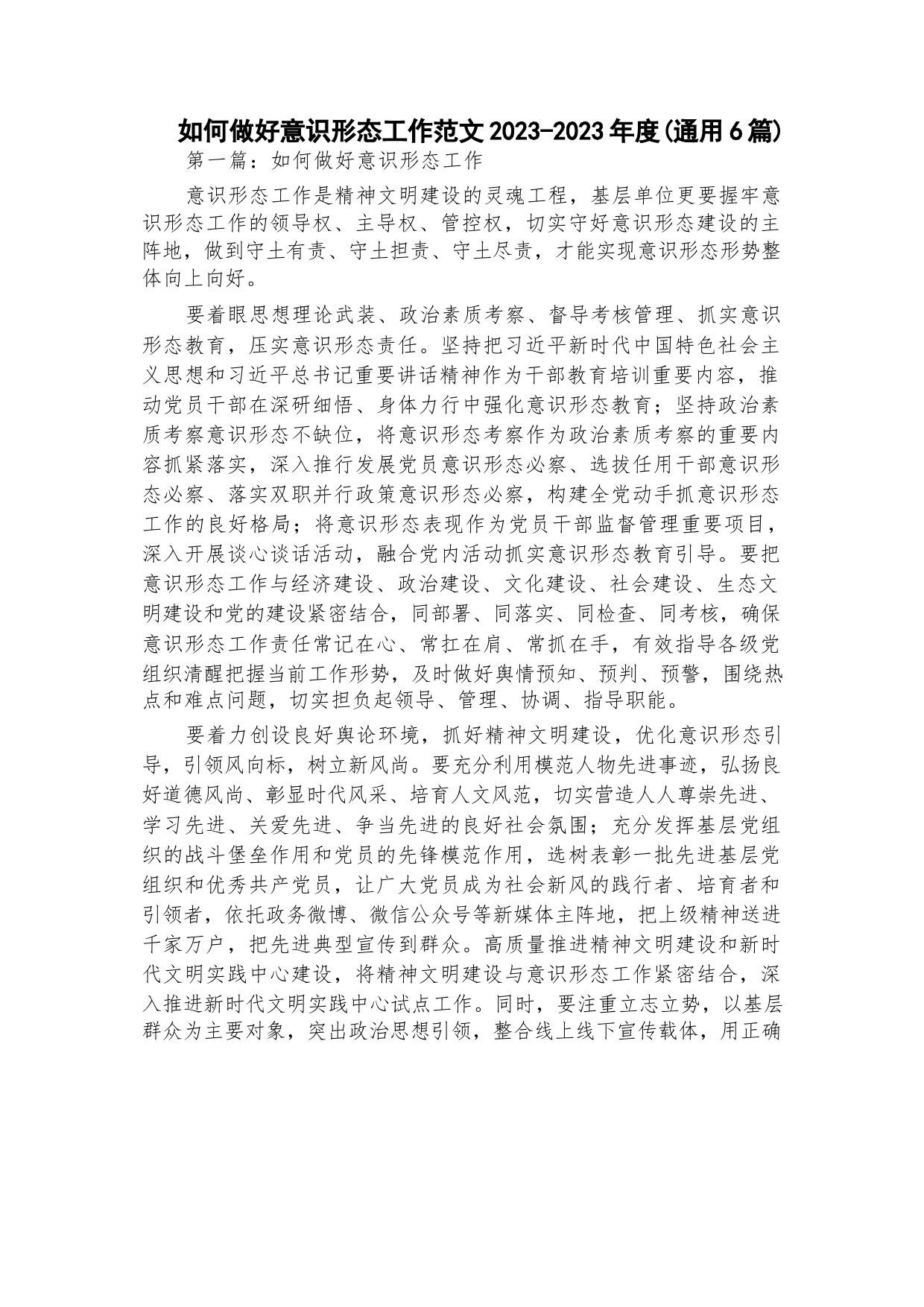 如何做好意識(shí)形態(tài)工作范文2023-2023年度(通用6篇)VIP免費(fèi)