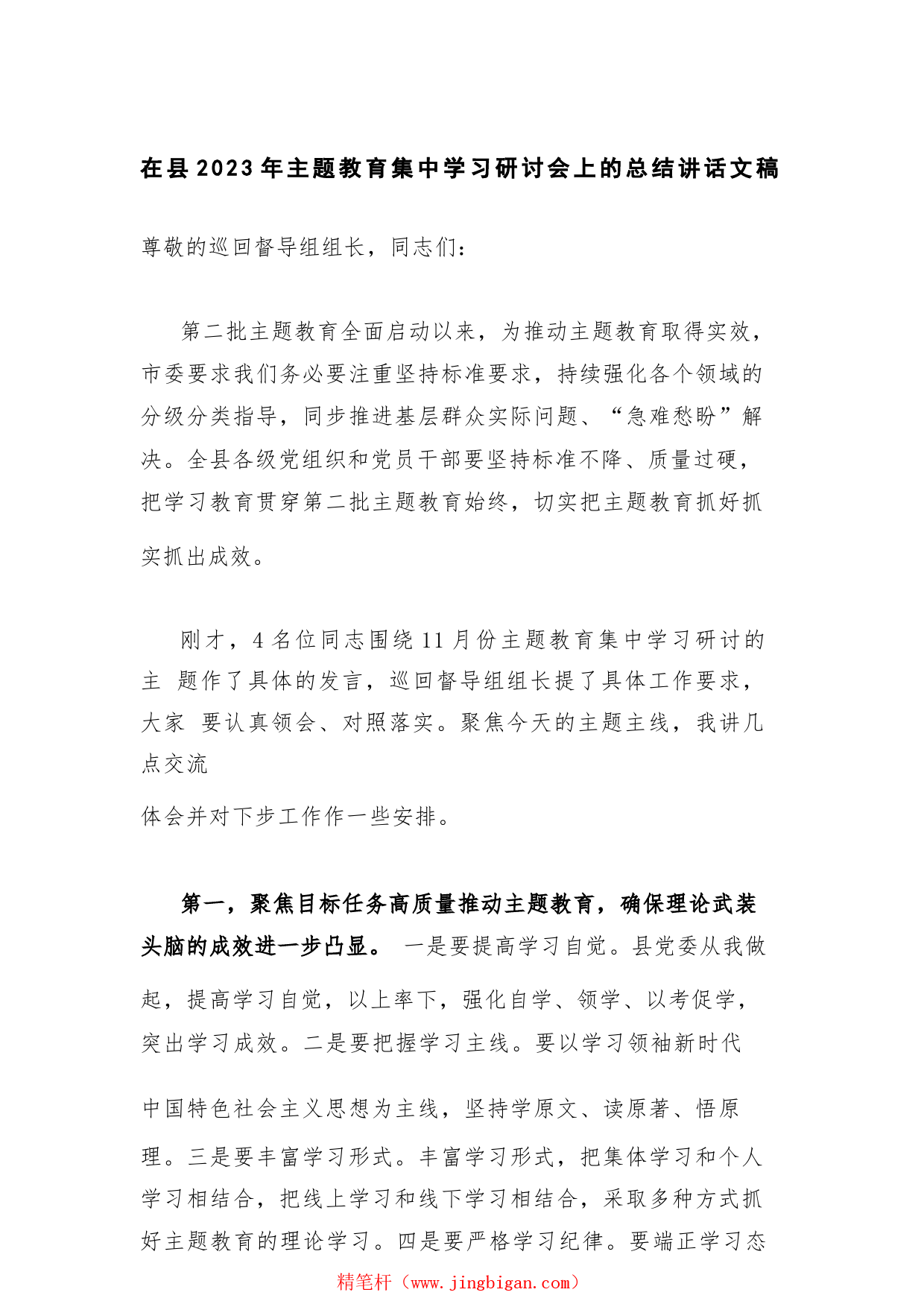 在縣2023年主題教育集中學(xué)習(xí)研討會上的總結(jié)講話文稿VIP免費