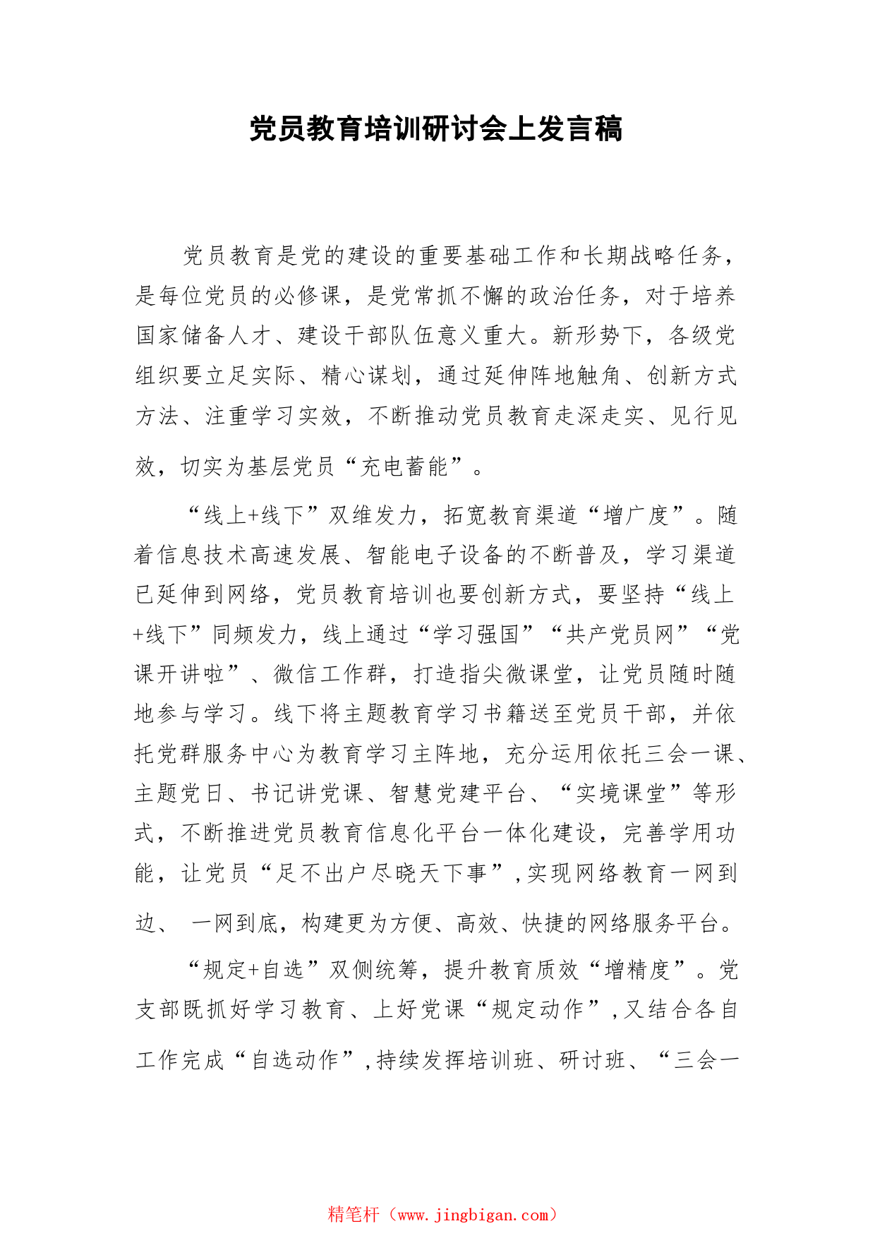 黨員教育培訓研討會上發(fā)言稿2篇VIP免費