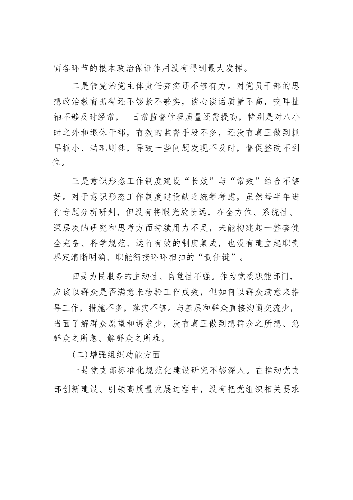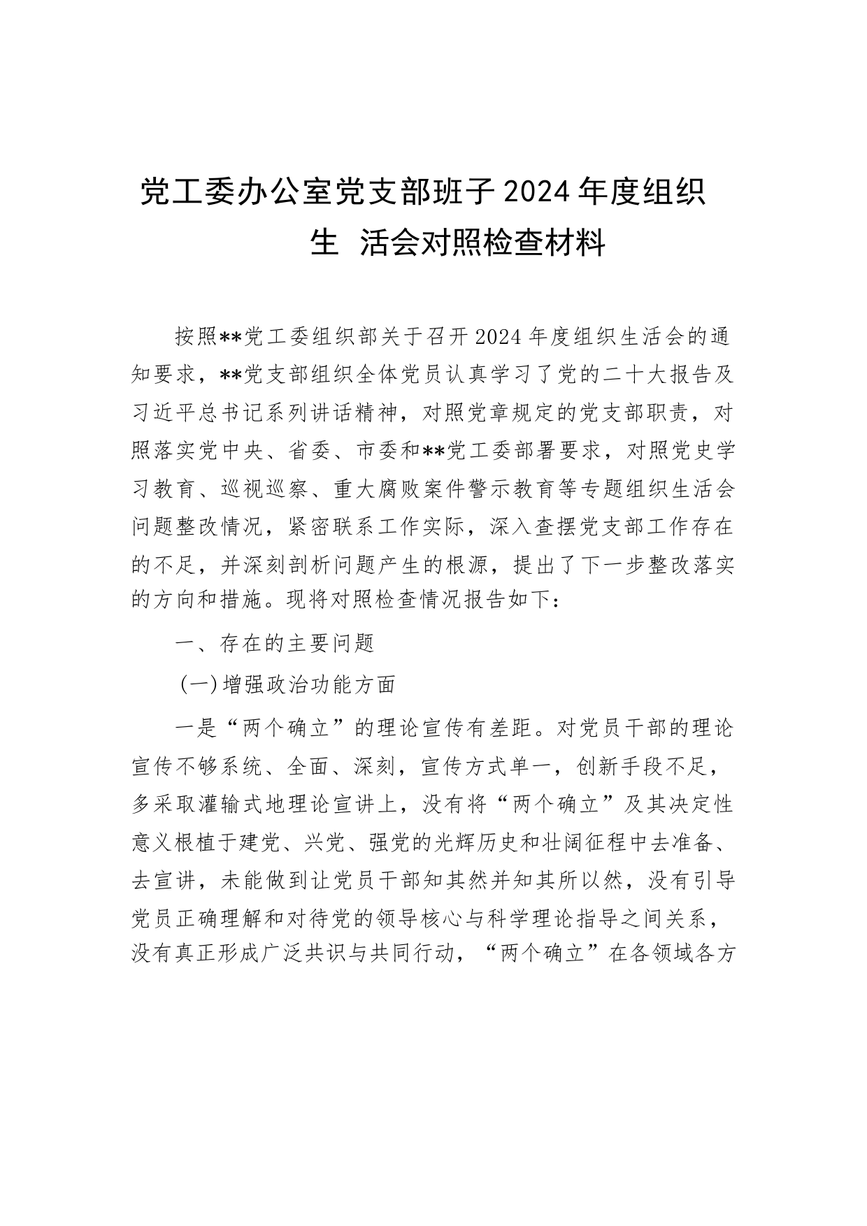 黨工委辦公室黨支部班子2024年度組織生活會對照檢查材料VIP免費
