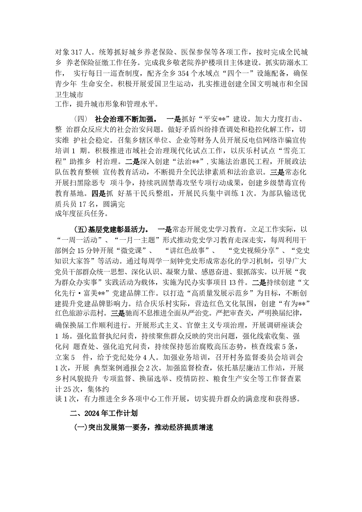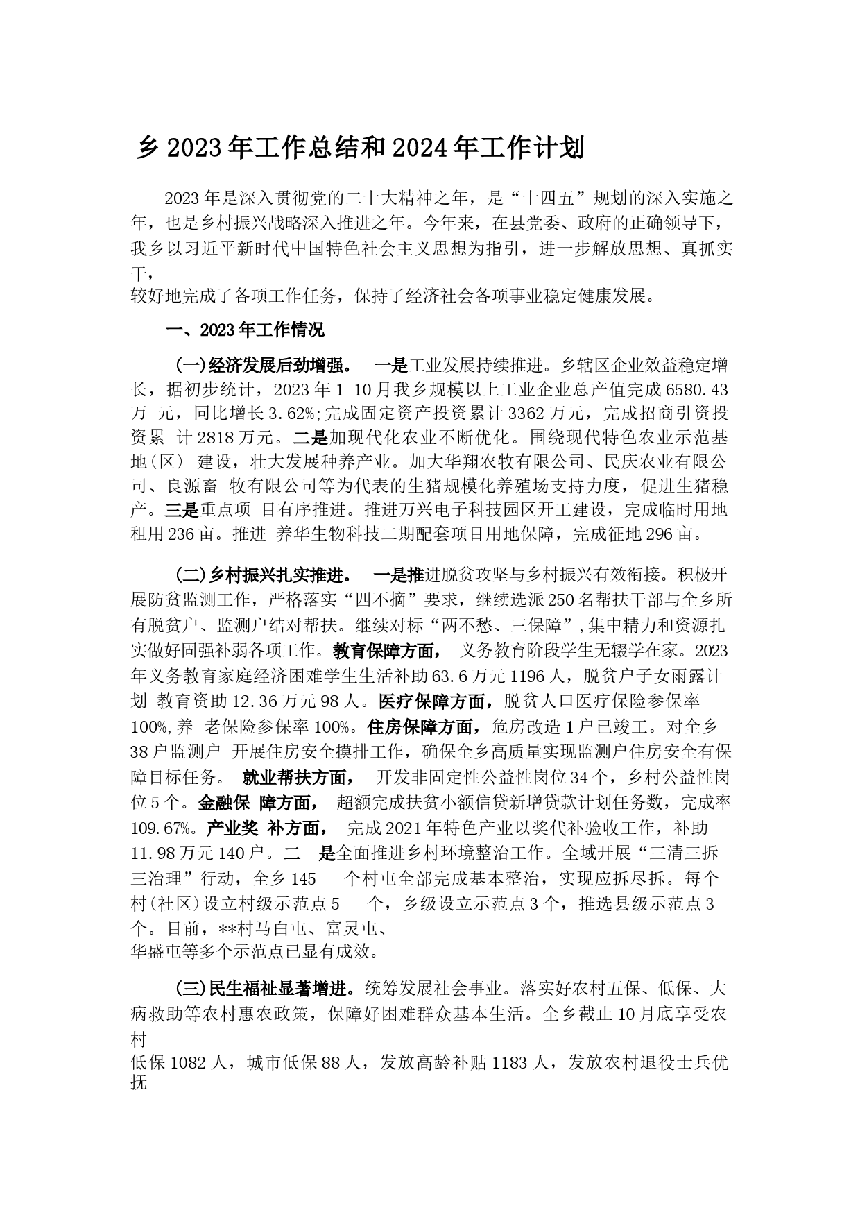 鄉(xiāng)2023年工作總結和2024年工作計劃VIP免費