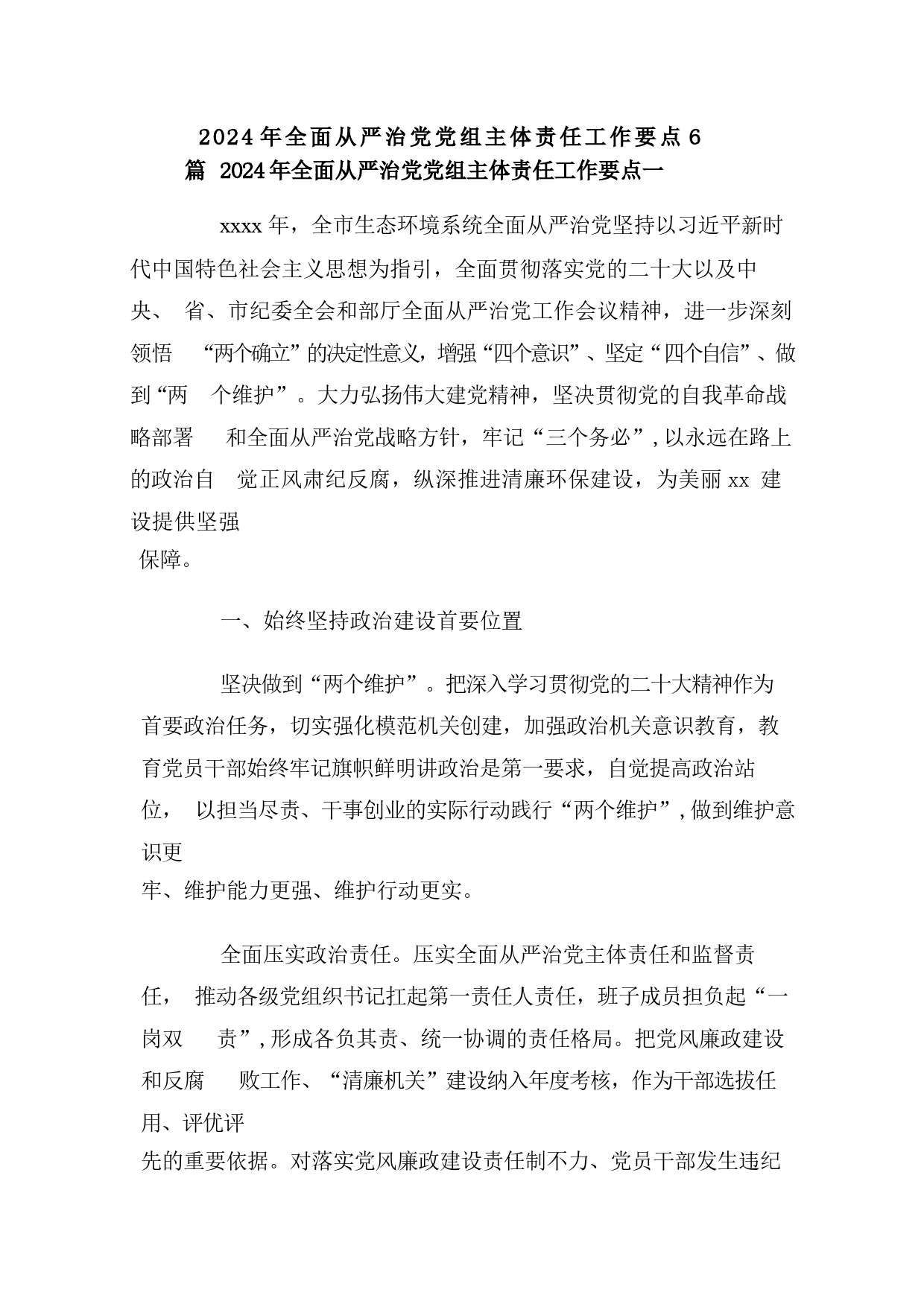 2024年全面從嚴治黨黨組主體責任工作要點6篇VIP免費