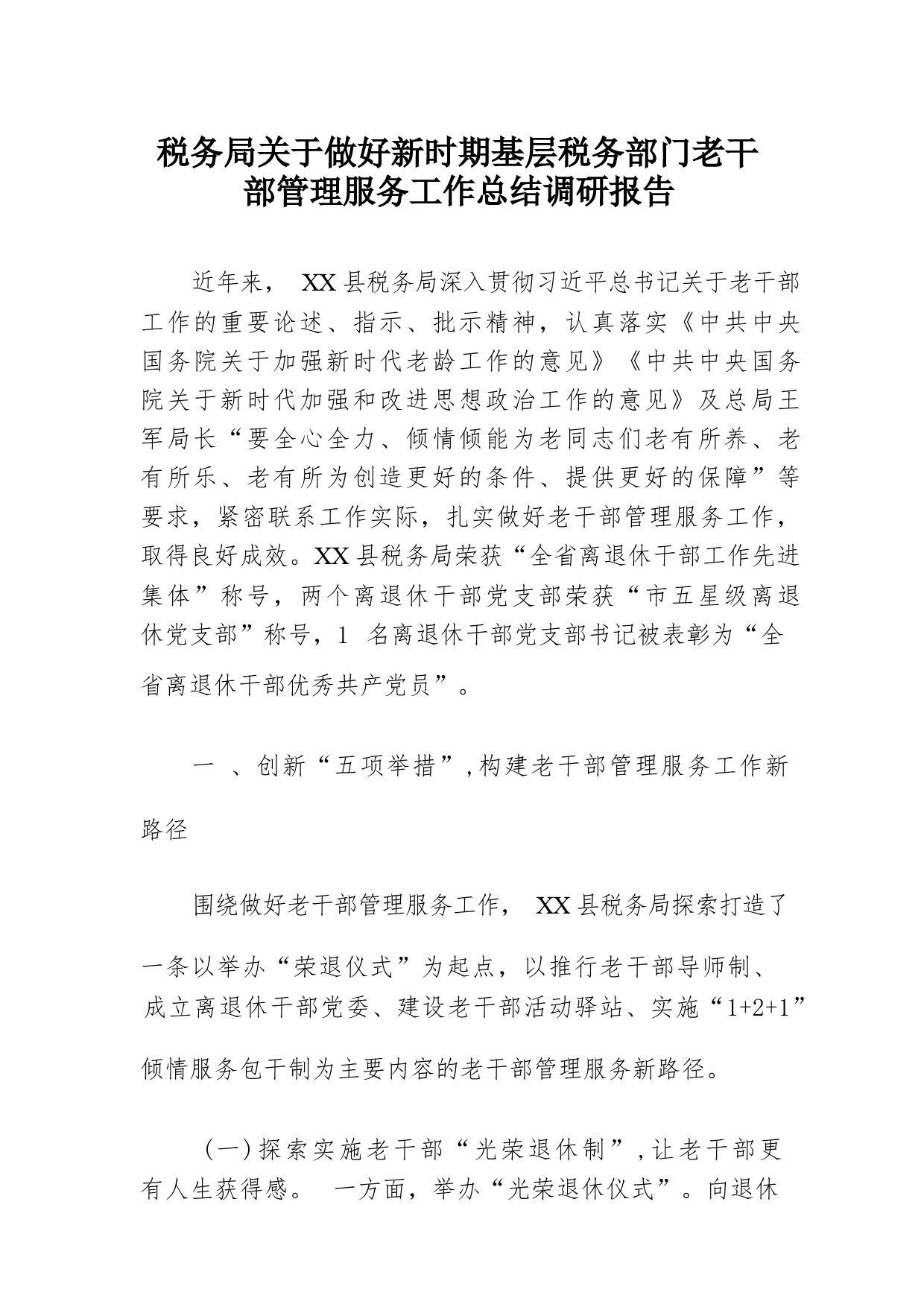 稅務(wù)局關(guān)于做好新時期基層稅務(wù)部門老干部管理服務(wù)工作總結(jié)調(diào)研報告VIP免費