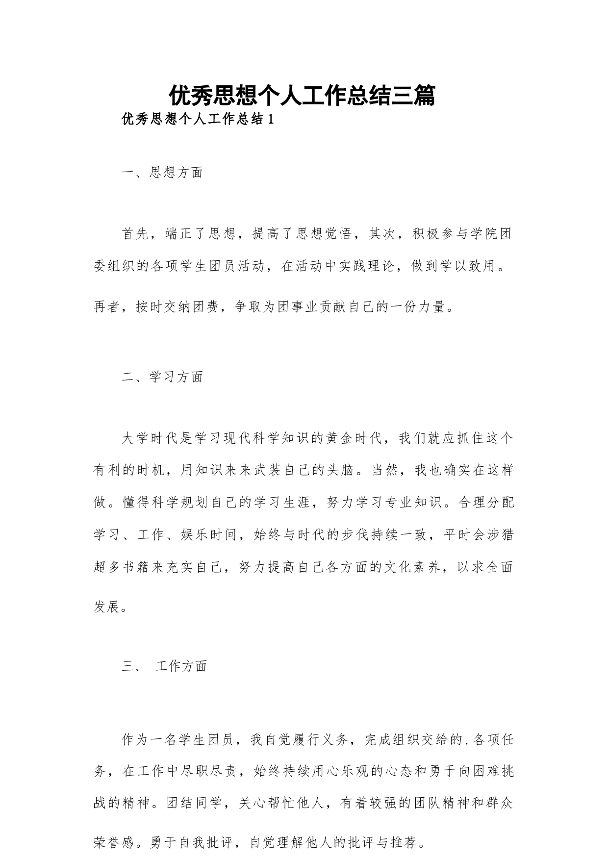 優(yōu)秀思想個(gè)人工作總結(jié)三篇VIP免費(fèi)