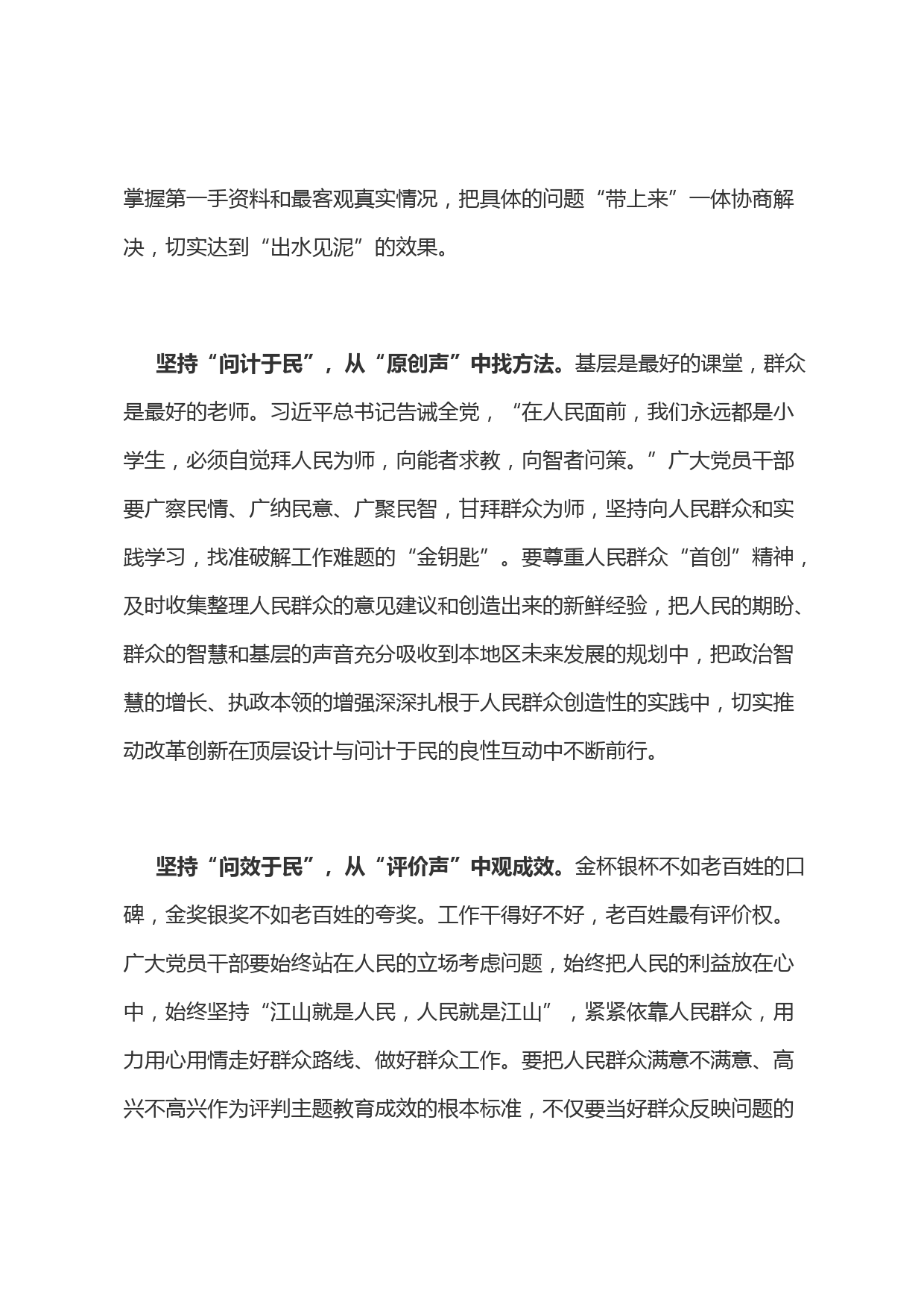 “三問”讓主題教育有“聲”更有“色”與第一批主題教育相比,第二批主題教育層級下移,同群眾的聯(lián)系更直接,面對的矛盾問題更復(fù)雜,群眾期待解決的問題更具體。廣大黨員干部要擺正自身位置,持續(xù)增強(qiáng)群眾觀念、公仆意識,銘記“我是誰、依靠誰、為了誰”,始終把“權(quán)為民所用、情為民所系、利為民為謀”根植于內(nèi)心、付諸于實(shí)際行動之中,問需于民、問計于民、問效于民,主動答好“民生答卷”,讓主題教育聽得見“群眾聲”,看得見“組織紅”,推動主題教育有“聲”更有“色”。堅持“問需于民”,從“疾苦聲”中明問題。善于傾聽群眾的心聲,是我們黨一貫倡導(dǎo)并堅持的優(yōu)...