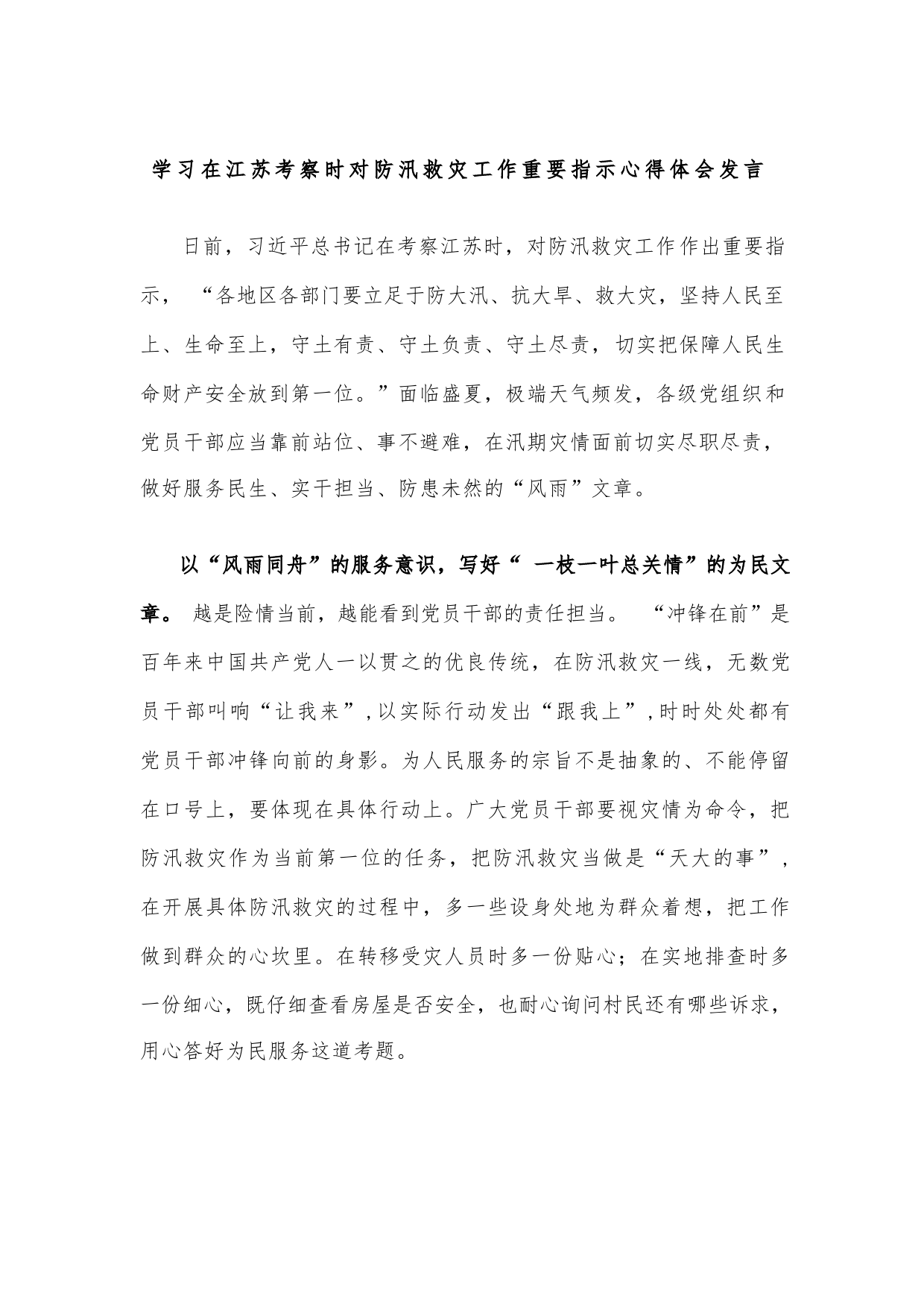 學(xué)習(xí)在江蘇考察時對防汛救災(zāi)工作重要指示心得體會發(fā)言VIP免費