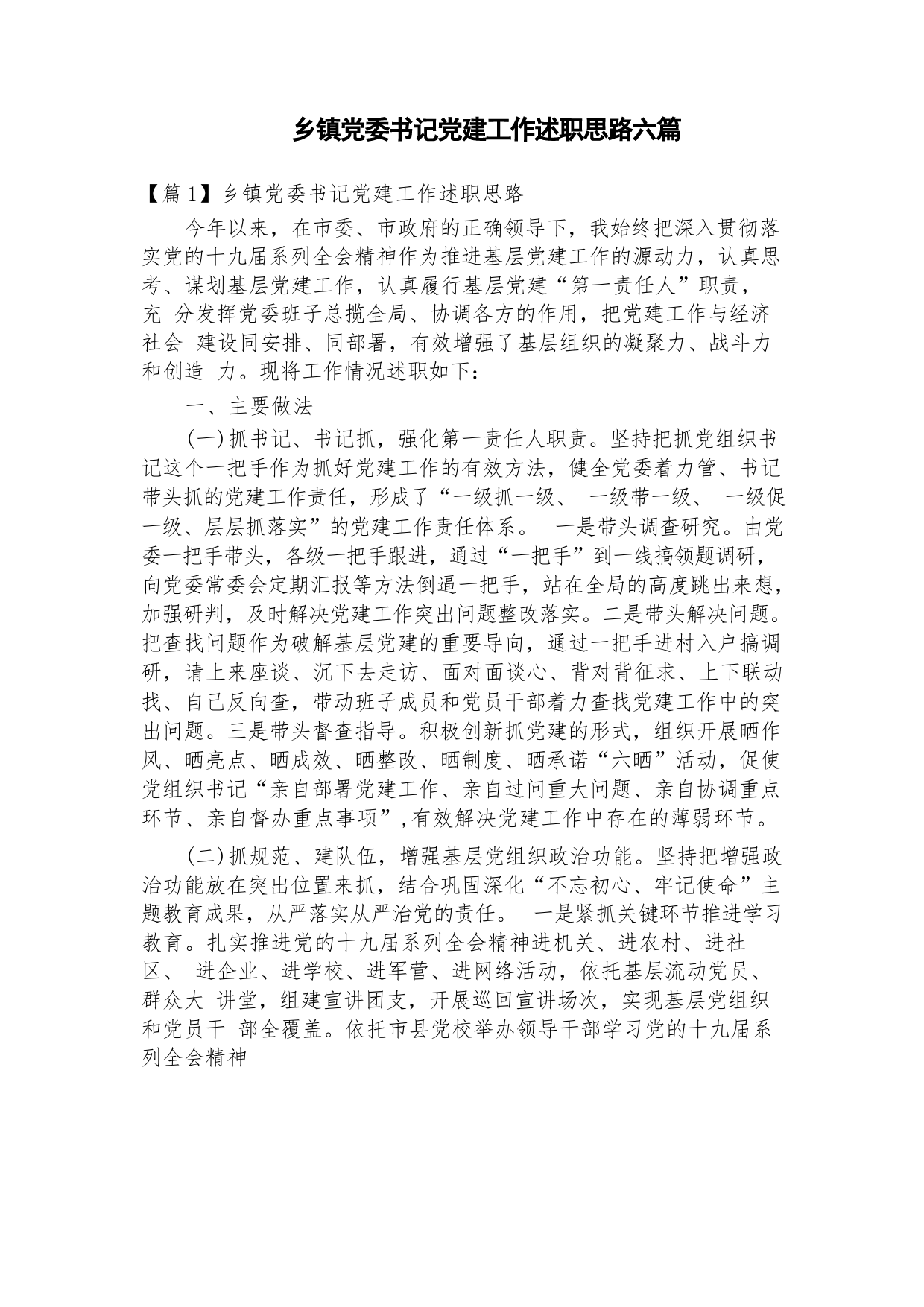 鄉(xiāng)鎮(zhèn)黨委書記黨建工作述職思路六篇VIP免費