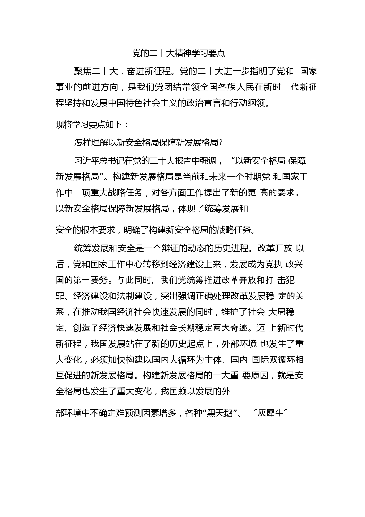 黨的二十大精神學(xué)習(xí)要點聚焦二十大,奮進新征程。黨的二十大進一步指明了黨和國家事業(yè)的前進方向,是我們黨團結(jié)帶領(lǐng)全國各族人民在新時代新征程堅持和發(fā)展中國特色社會主義的政治宣言和行動綱領(lǐng)?,F(xiàn)將學(xué)習(xí)要點如下:怎樣理解以新安全格局保障新發(fā)展格局?習(xí)近平總書記在黨的二十大報告中強調(diào),“以新安全格局保障新發(fā)展格局”。構(gòu)建新發(fā)展格局是當前和未來一個時期黨和國家工作中一項重大戰(zhàn)略任務(wù),對各方面工作提出了新的更高的要求。以新安全格局保障新發(fā)展格局,體現(xiàn)了統(tǒng)籌發(fā)展和安全的根本要求,明確了構(gòu)建新安全格局的戰(zhàn)略任務(wù)。統(tǒng)籌發(fā)展和安全是一個辯證的動態(tài)的歷...