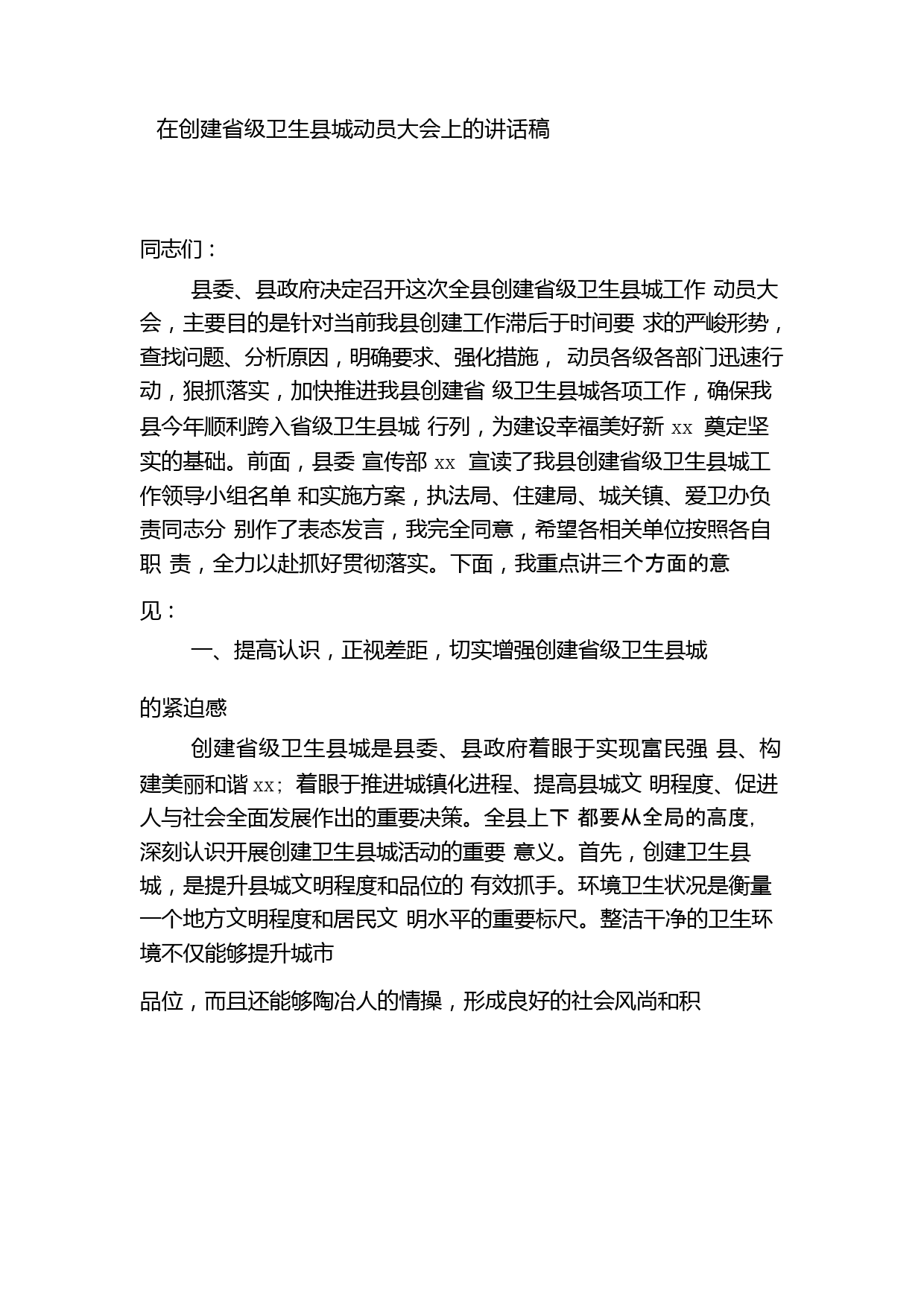 在創(chuàng)建省級衛(wèi)生縣城動員大會上的講話稿VIP免費(fèi)