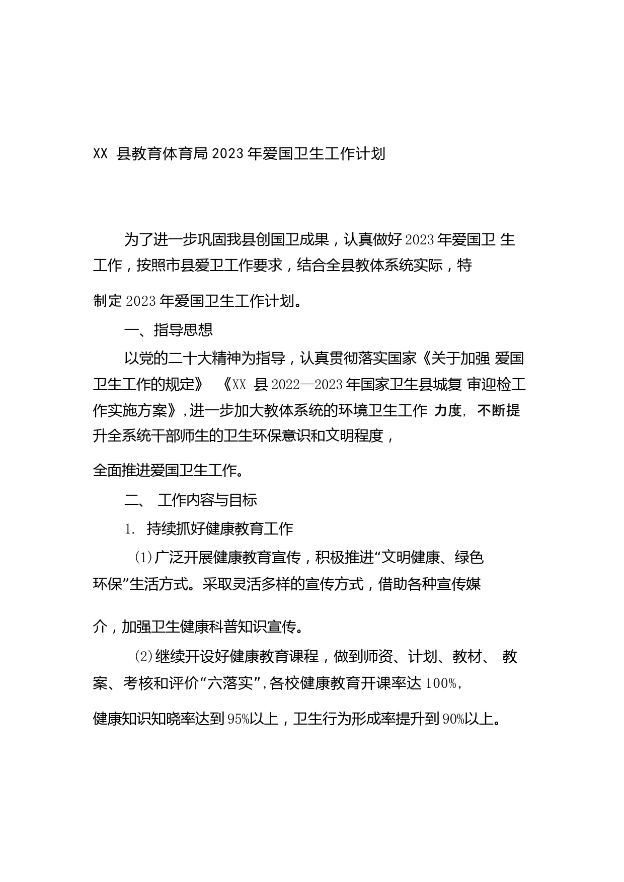 XX縣教育體育局2023年愛國衛(wèi)生工作計(jì)劃VIP免費(fèi)
