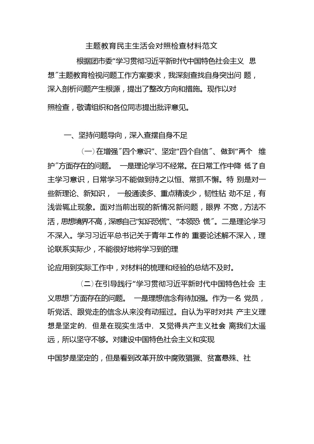 主題教育民主生活會對照檢查材料范文根據(jù)團市委“學習貫徹習近平新時代中國特色社會主義思想"主題教育檢視問題工作方案要求,我深刻查找自身突出問題,深入剖析問題產生根源,提出了整改方向和措施?,F(xiàn)作以對照檢查,敬請組織和各位同志提出批評意見。一、堅持問題導向,深入查擺自身不足(一)在增強"四個意識”、堅定“四個自信"、做到“兩個維護"方面存在的問題。一是理論學習不經常。在日常工作中降低了自主學習意識,日常學習不能做到持之以恒、常抓不懈。特別是對一些新理論、新知識,一般通讀多、重點精讀少,韌性鉆勁不足,有淺嘗輒止現(xiàn)象。面對當前出現(xiàn)的新情況新...