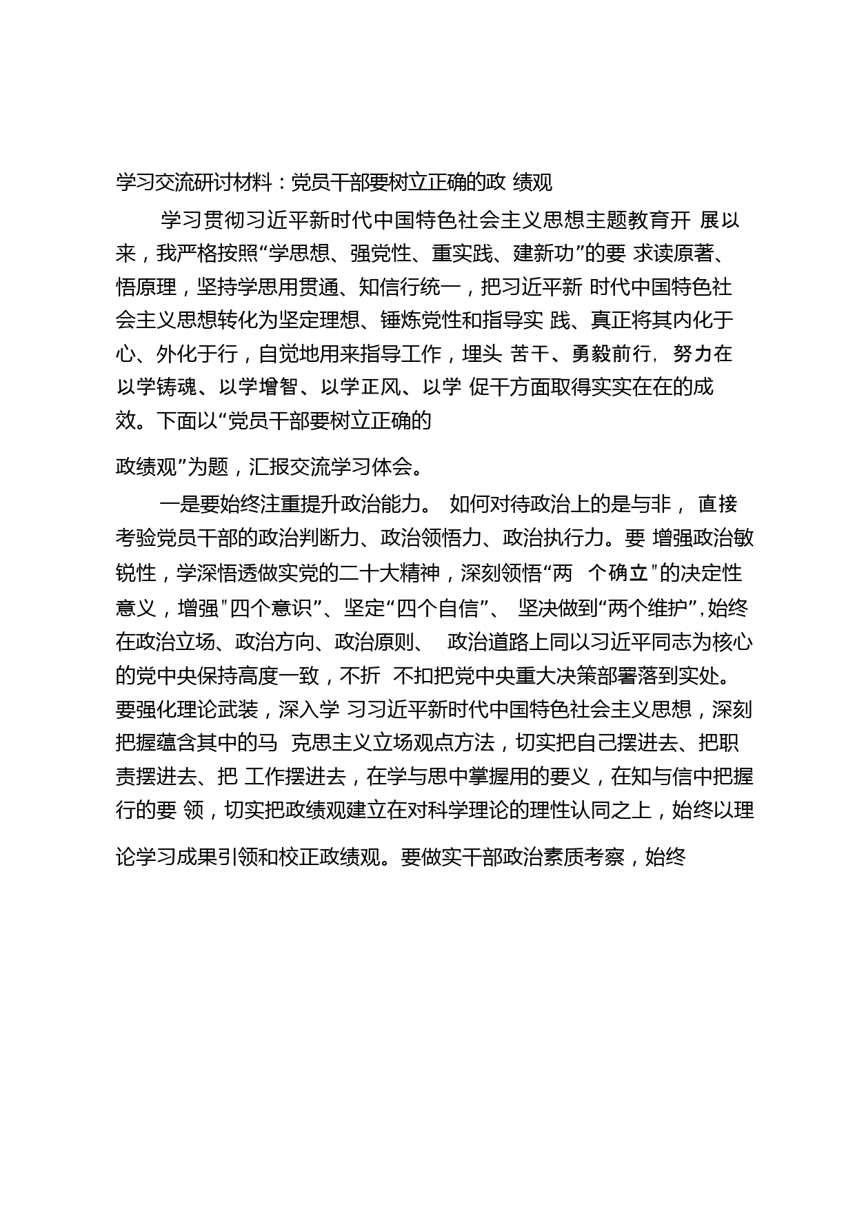 學習交流研討材料:黨員干部要樹立正確的政績觀VIP免費