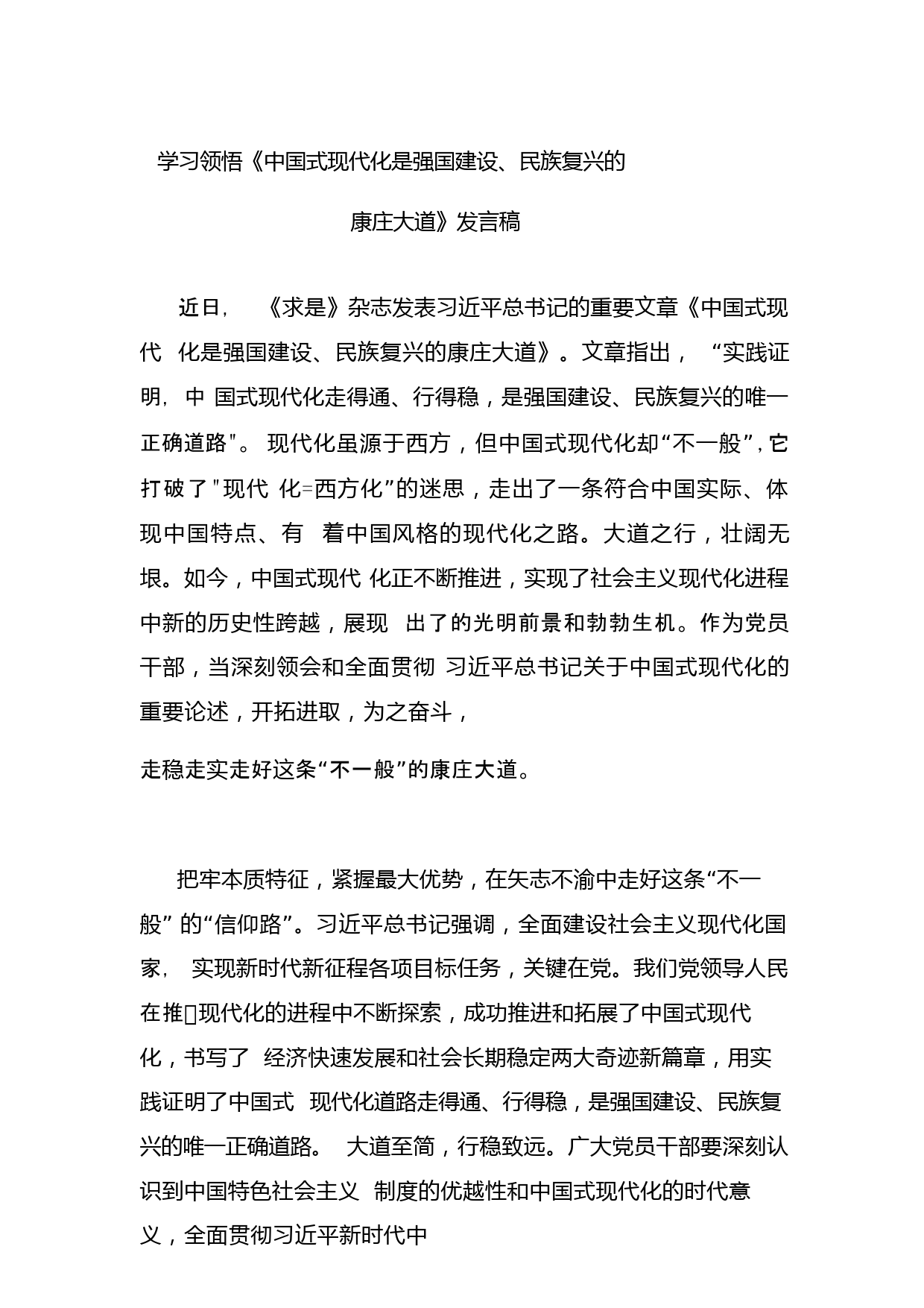 學習領悟《中國式現(xiàn)代化是強國建設、民族復興的康莊大道》發(fā)言稿VIP免費