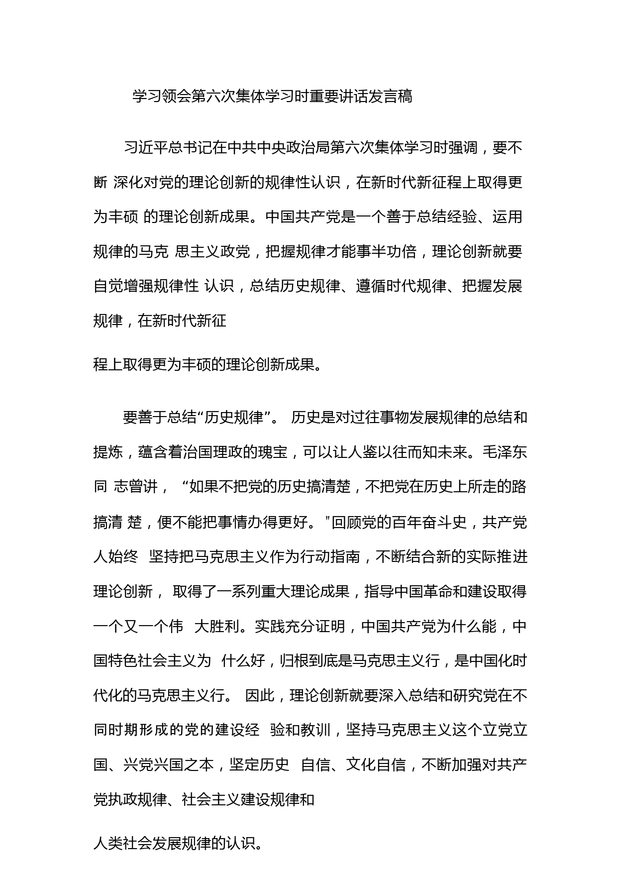 學(xué)習(xí)領(lǐng)會(huì)第六次集體學(xué)習(xí)時(shí)重要講話發(fā)言稿VIP免費(fèi)