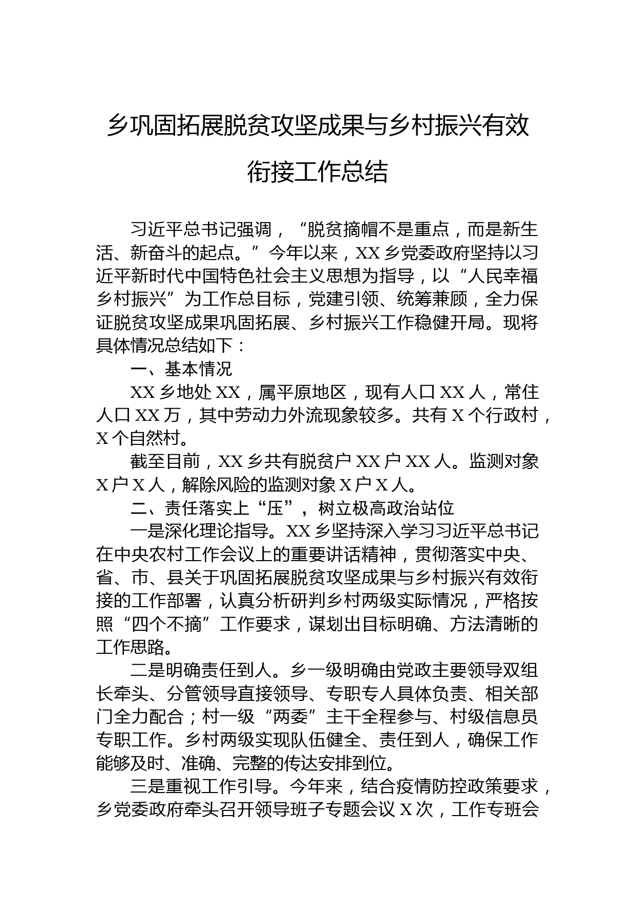 鄉(xiāng)鞏固拓展脫貧攻堅(jiān)成果與鄉(xiāng)村振興有效銜接工作總結(jié)VIP免費(fèi)