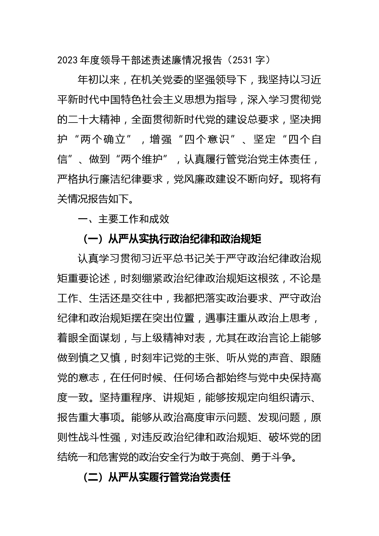 2023年度領(lǐng)導(dǎo)干部述責(zé)述廉情況報告VIP免費
