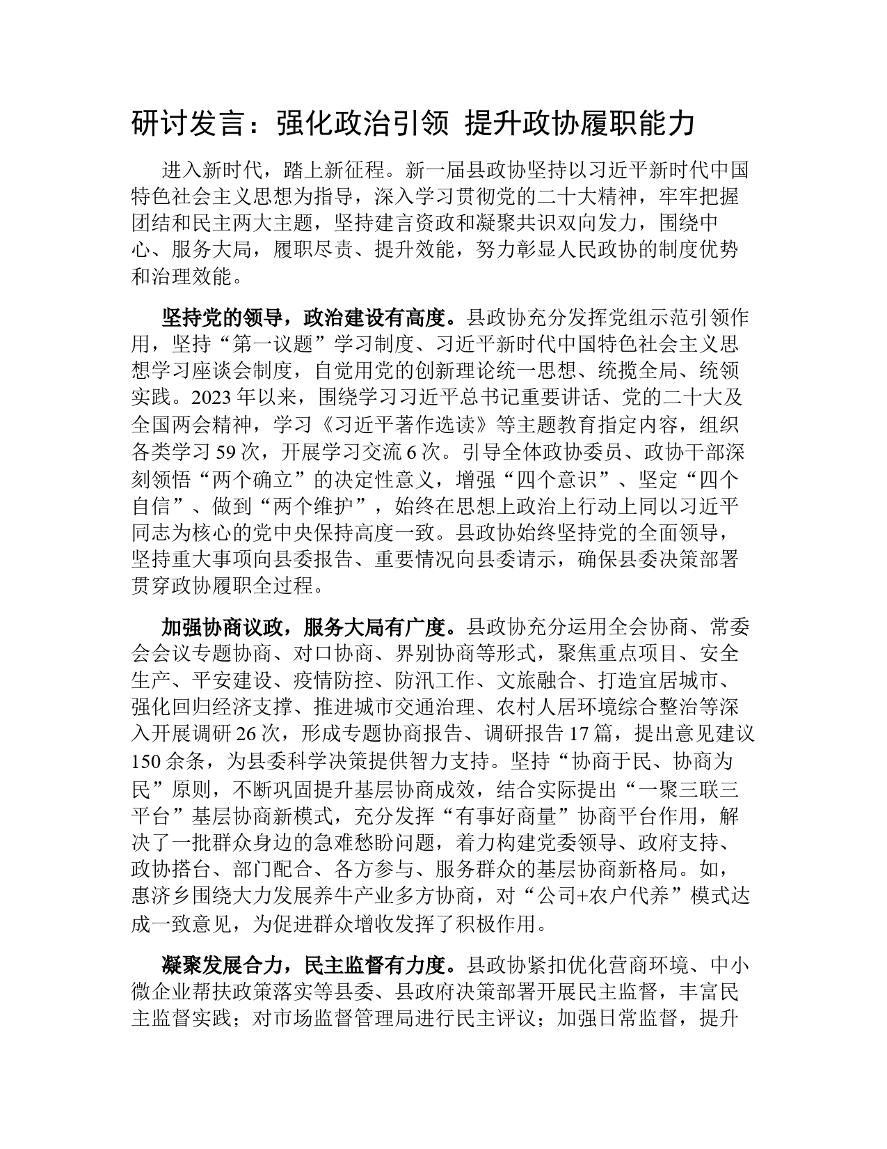 研討發(fā)言:強(qiáng)化政治引領(lǐng) 提升政協(xié)履職能力VIP免費(fèi)