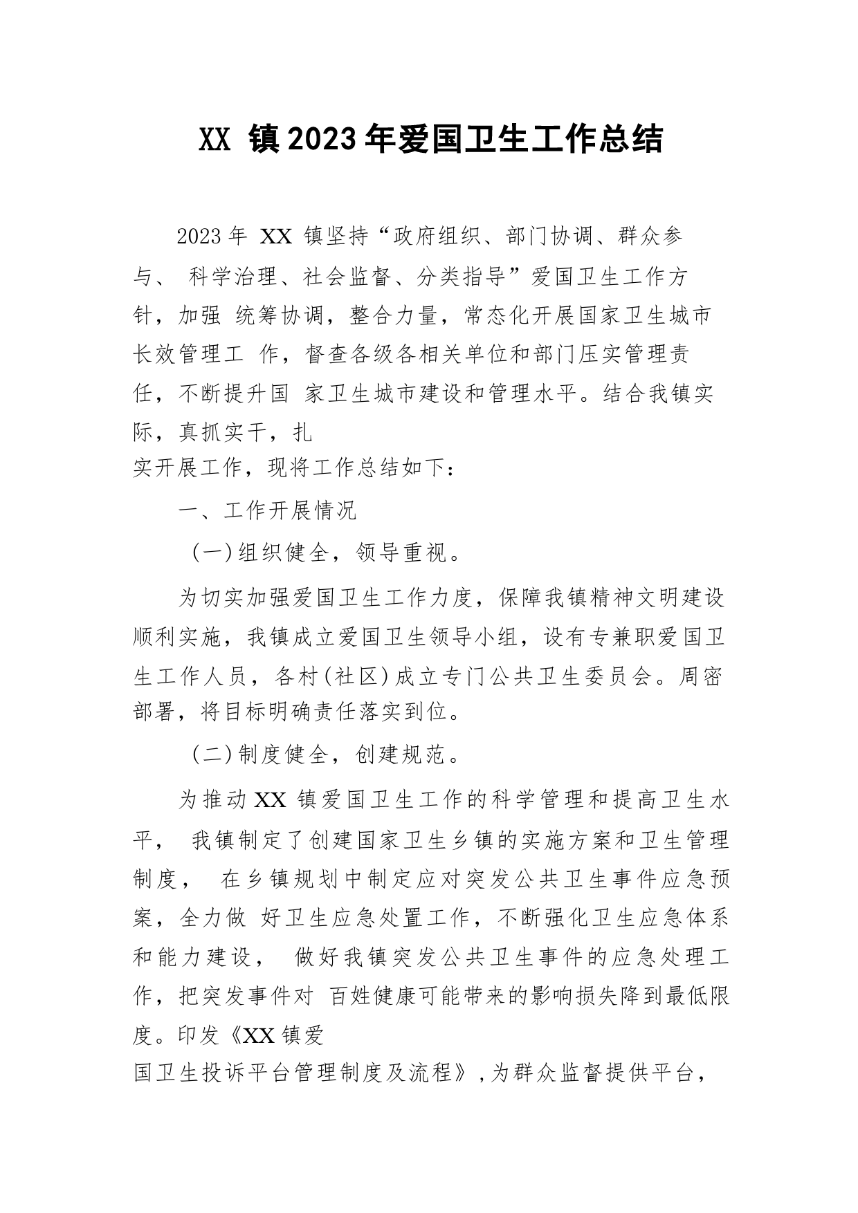 XX鎮(zhèn)2023年愛國衛(wèi)生工作總結(jié)VIP免費