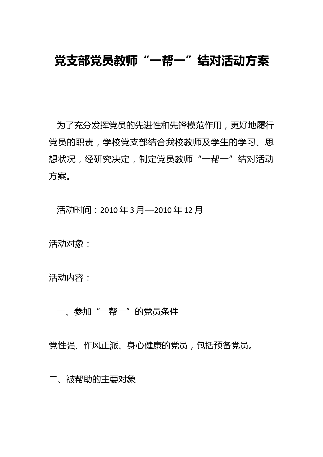 黨支部黨員教師“一幫一”結(jié)對活動方案VIP免費(fèi)