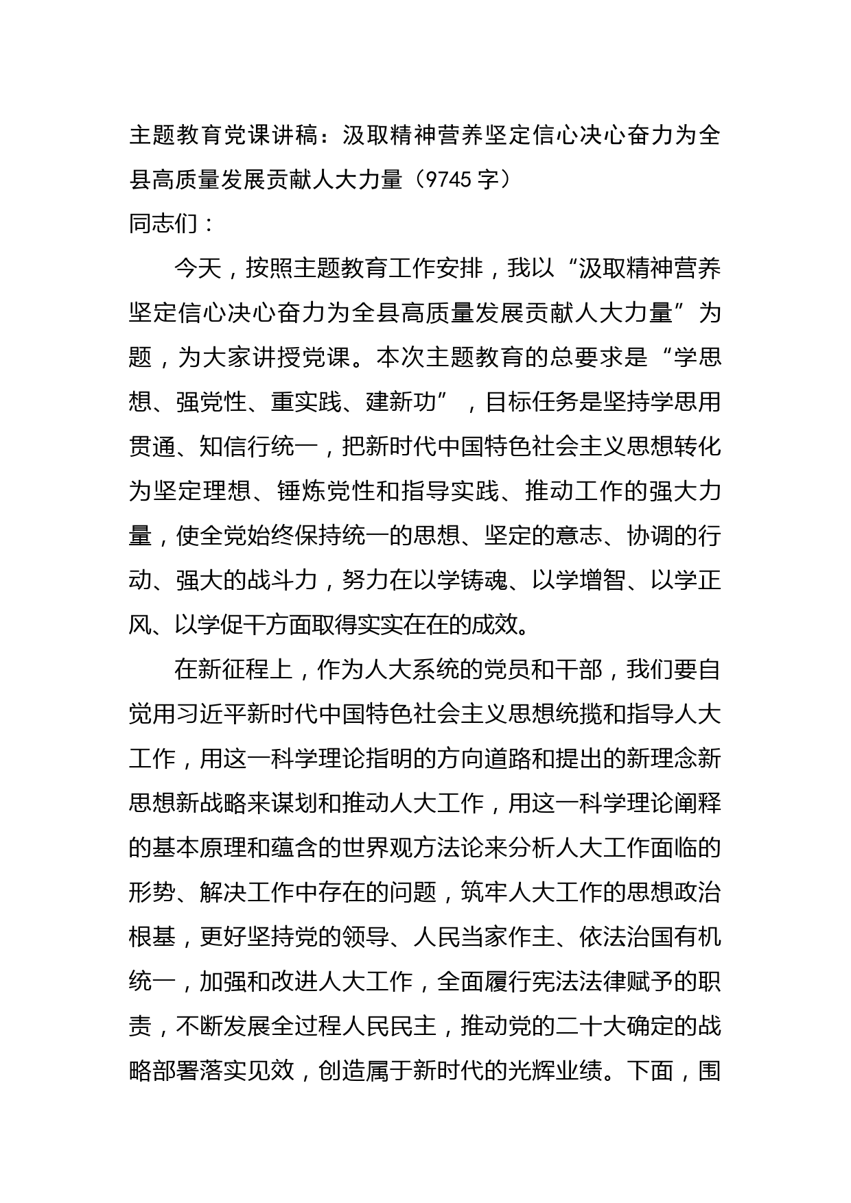 主題教育黨課講稿:汲取精神營養(yǎng)堅定信心決心奮力為全縣高質(zhì)量發(fā)展貢獻人大力量VIP免費