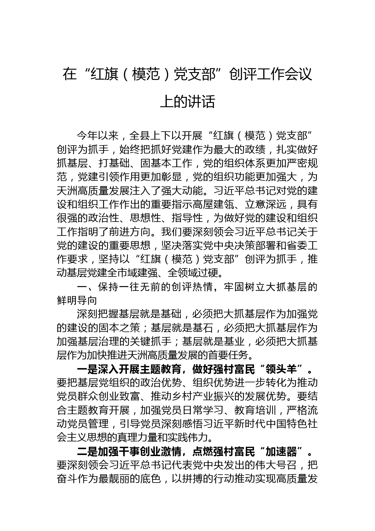 在“紅旗(模范)黨支部”創(chuàng)評工作會議上的講話VIP免費