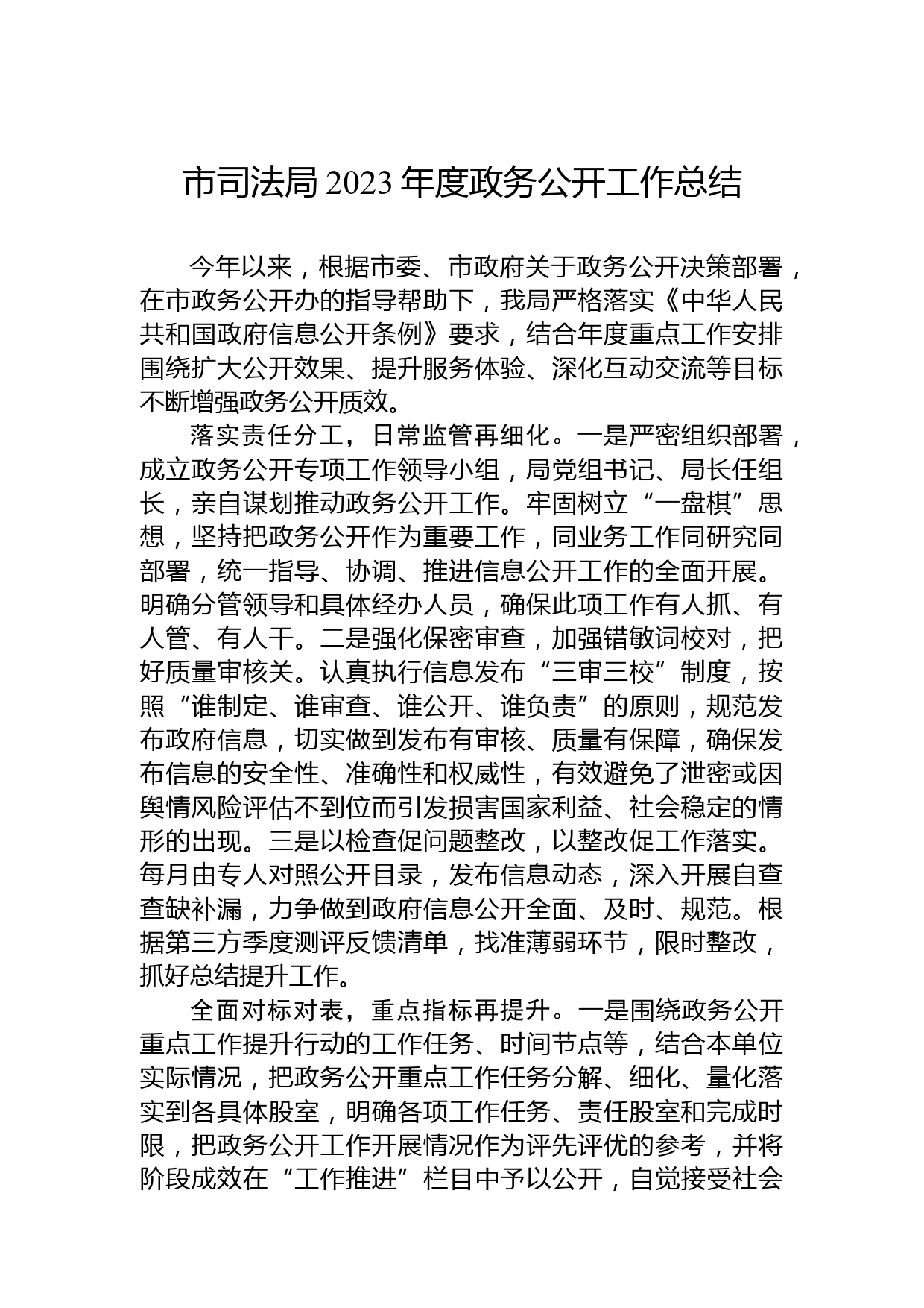 市司法局2023年度政務(wù)公開工作總結(jié)VIP免費(fèi)