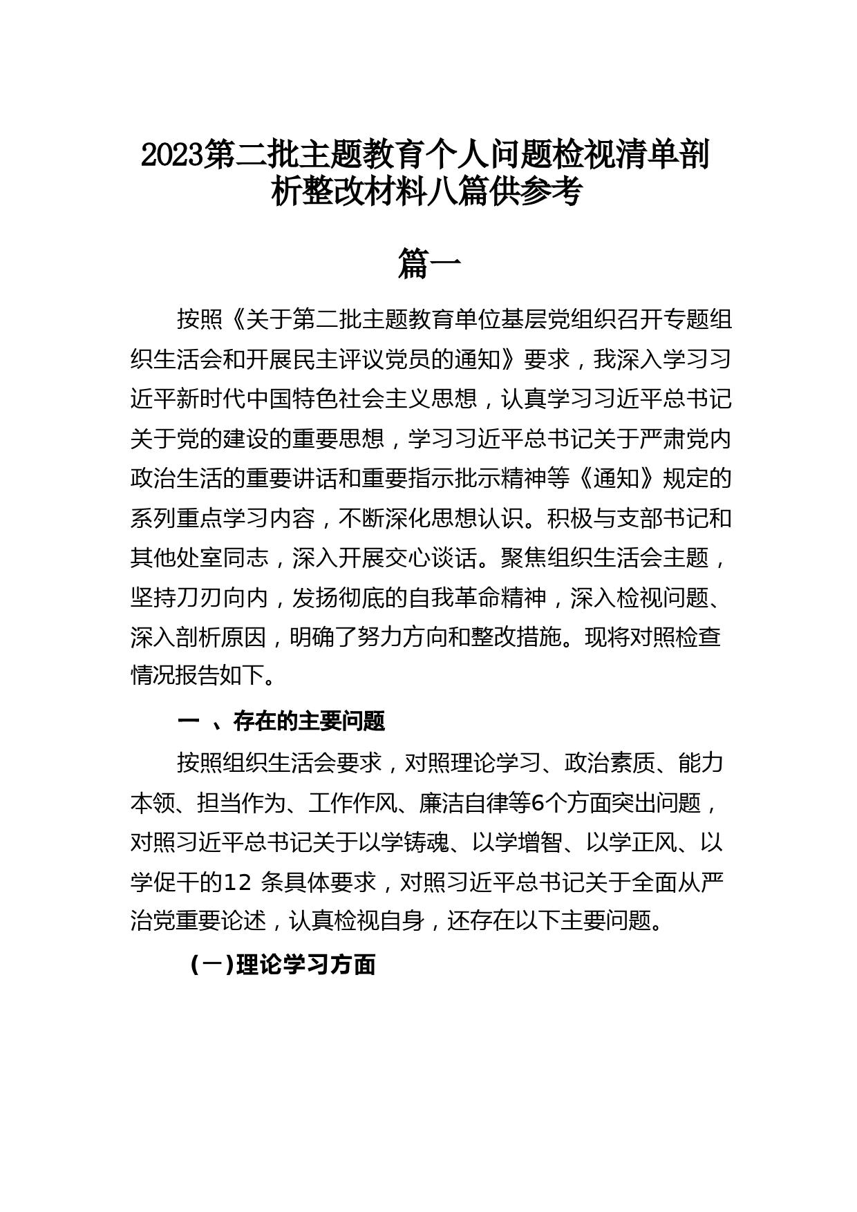 2023第二批主題教育個(gè)人問題檢視清單剖析整改材料八篇供參考VIP免費(fèi)