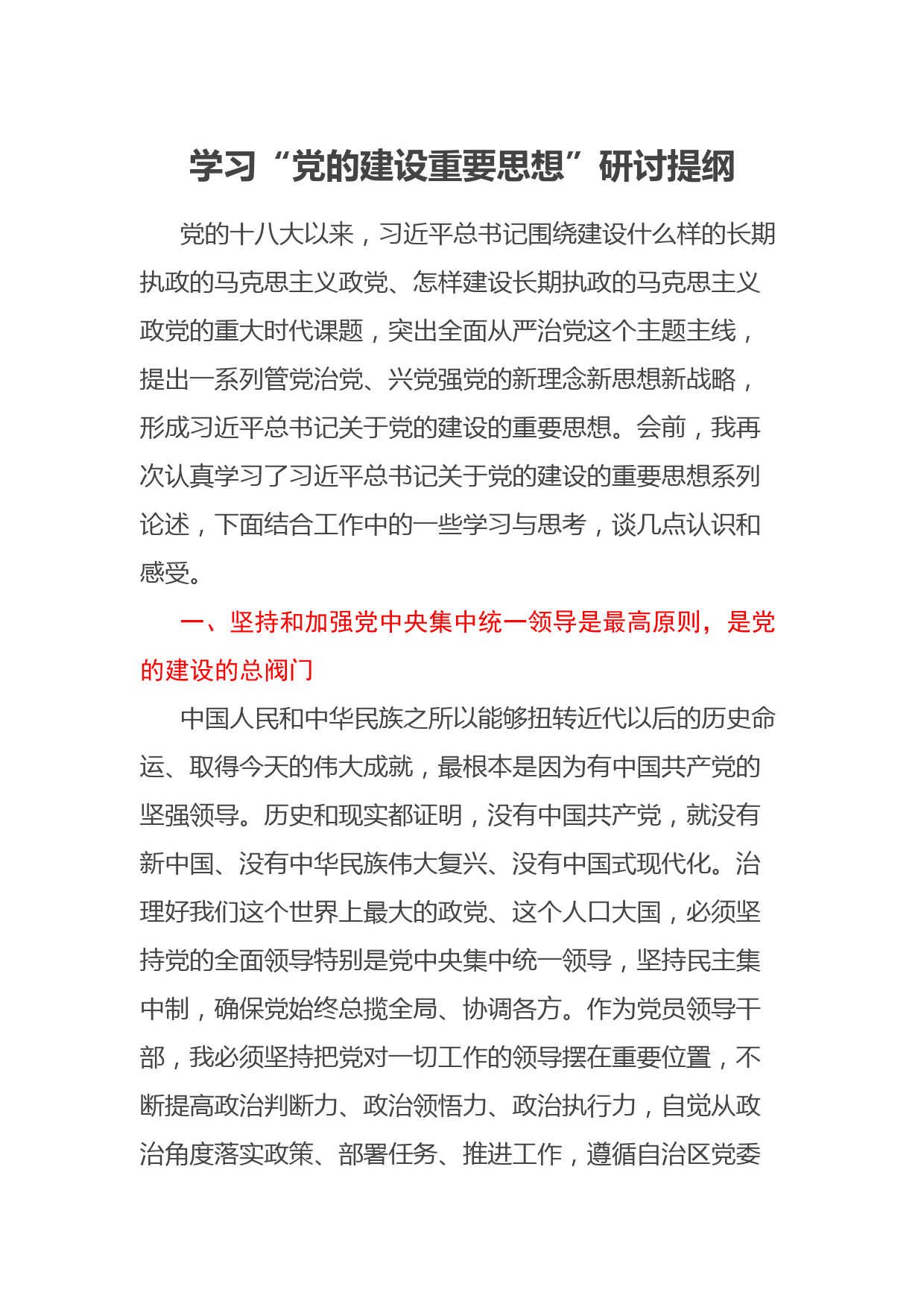 學(xué)習(xí)“黨的建設(shè)重要思想”研討提綱VIP免費(fèi)