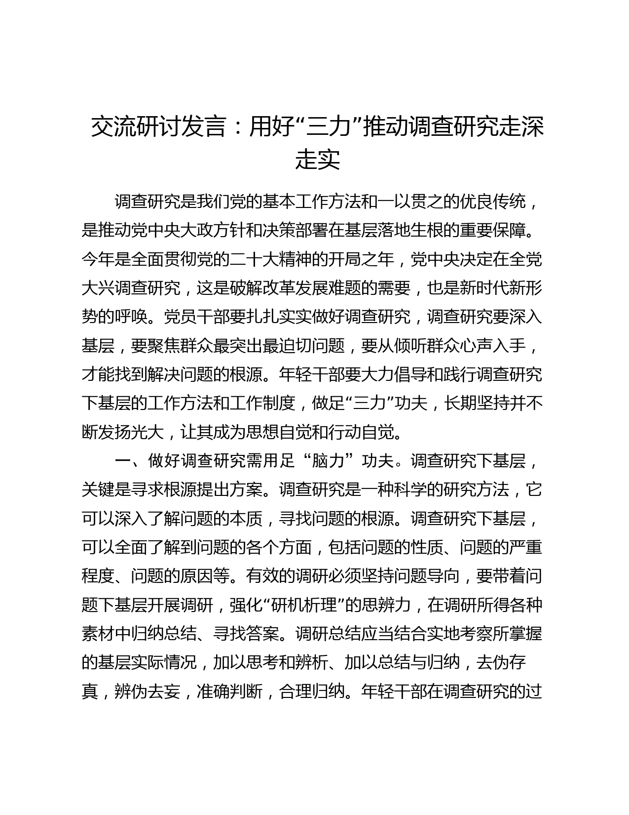 交流研討發(fā)言:用好“三力” 推動(dòng)調(diào)查研究走深走實(shí)VIP免費(fèi)