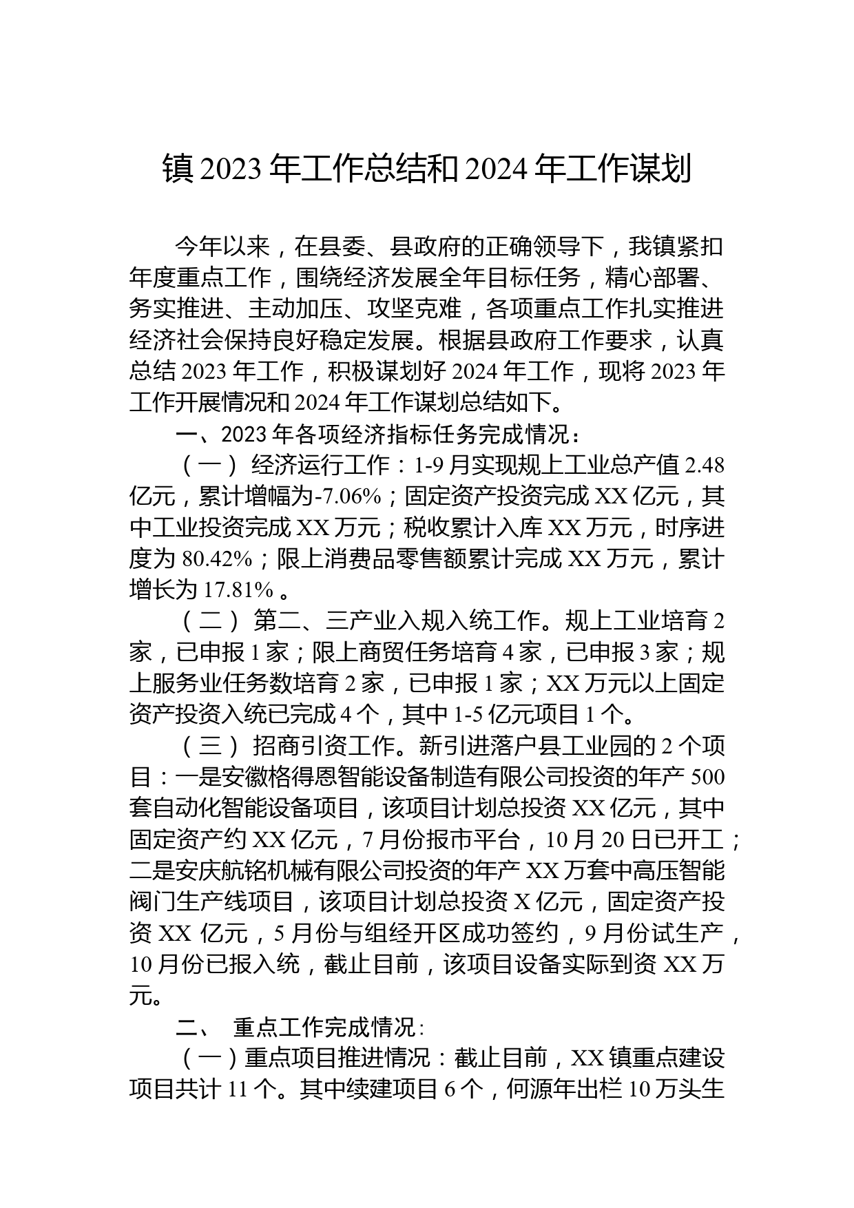 鎮(zhèn)2023年工作總結(jié)和2024年工作謀劃(20231214)VIP免費(fèi)