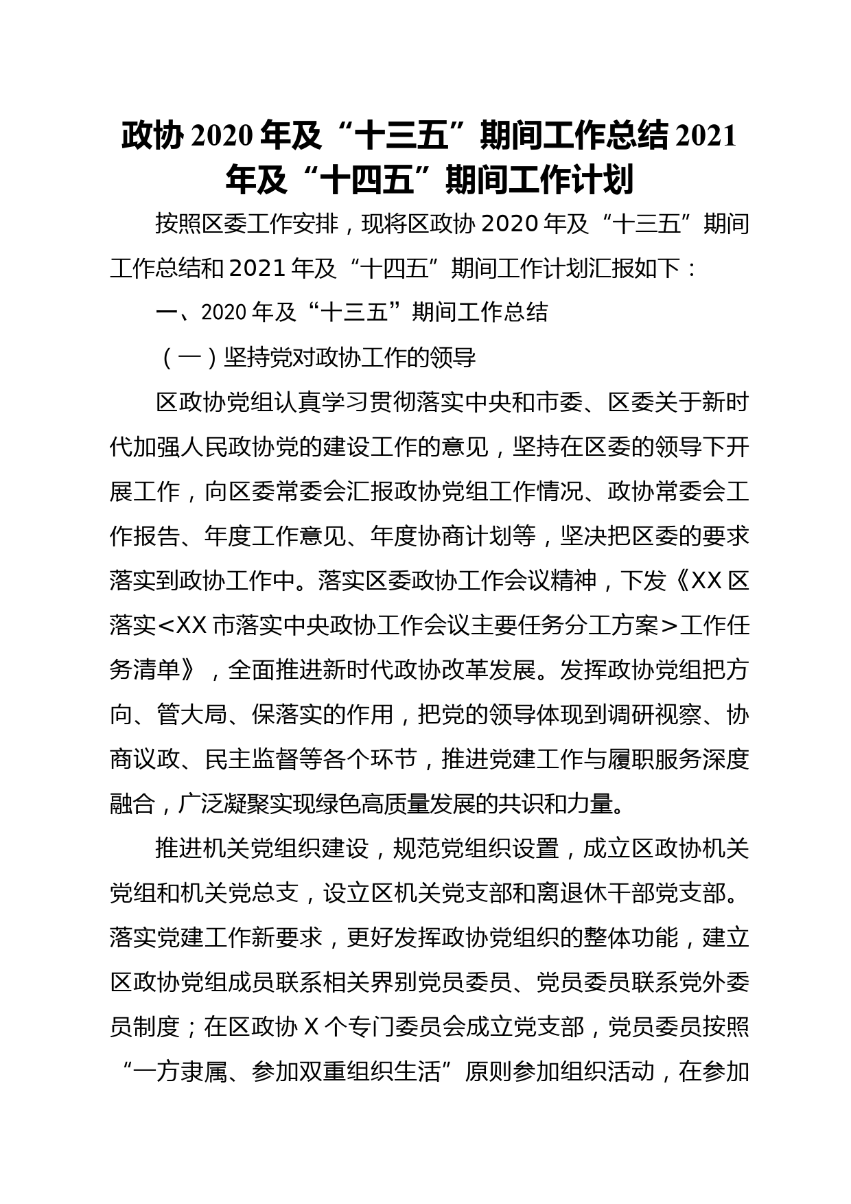 政協(xié)2020年及十三五期間工作總結(jié)2021年及十四五期間工作計(jì)劃VIP免費(fèi)