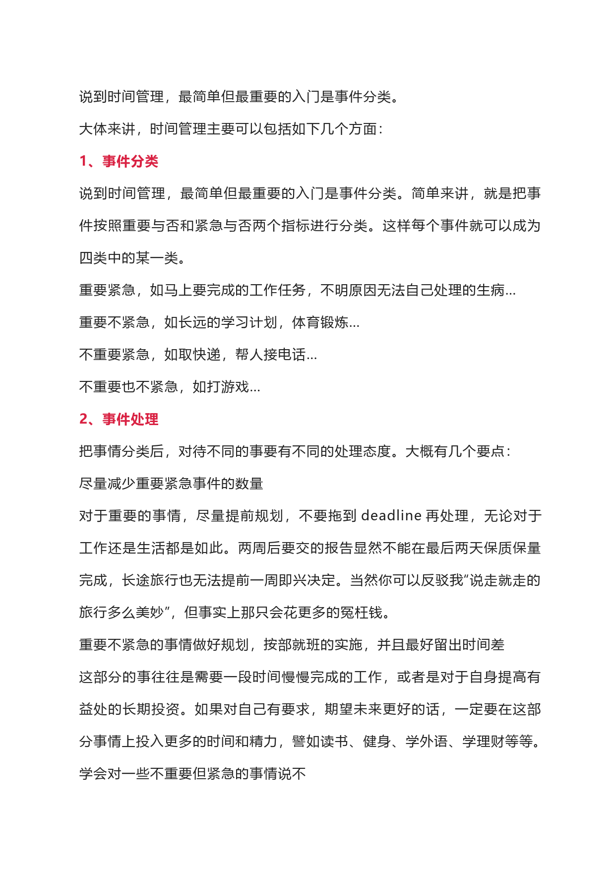 說到時間管理,最簡單但最重要的入門是事件分類。大體來講,時間管理主要可以包括如下幾個方面:1、事件分類說到時間管理,最簡單但最重要的入門是事件分類。簡單來講,就是把事件按照重要與否和緊急與否兩個指標(biāo)...