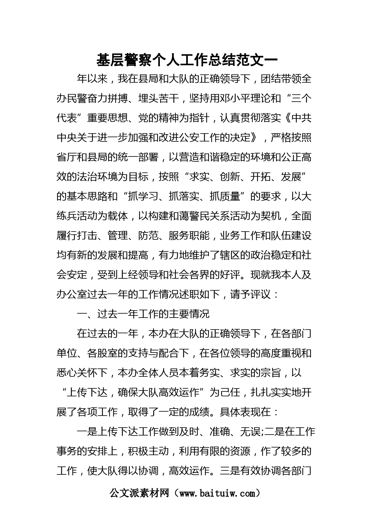 【政法隊伍】基層警察個人工作總結(jié)范文(3篇)VIP免費(fèi)