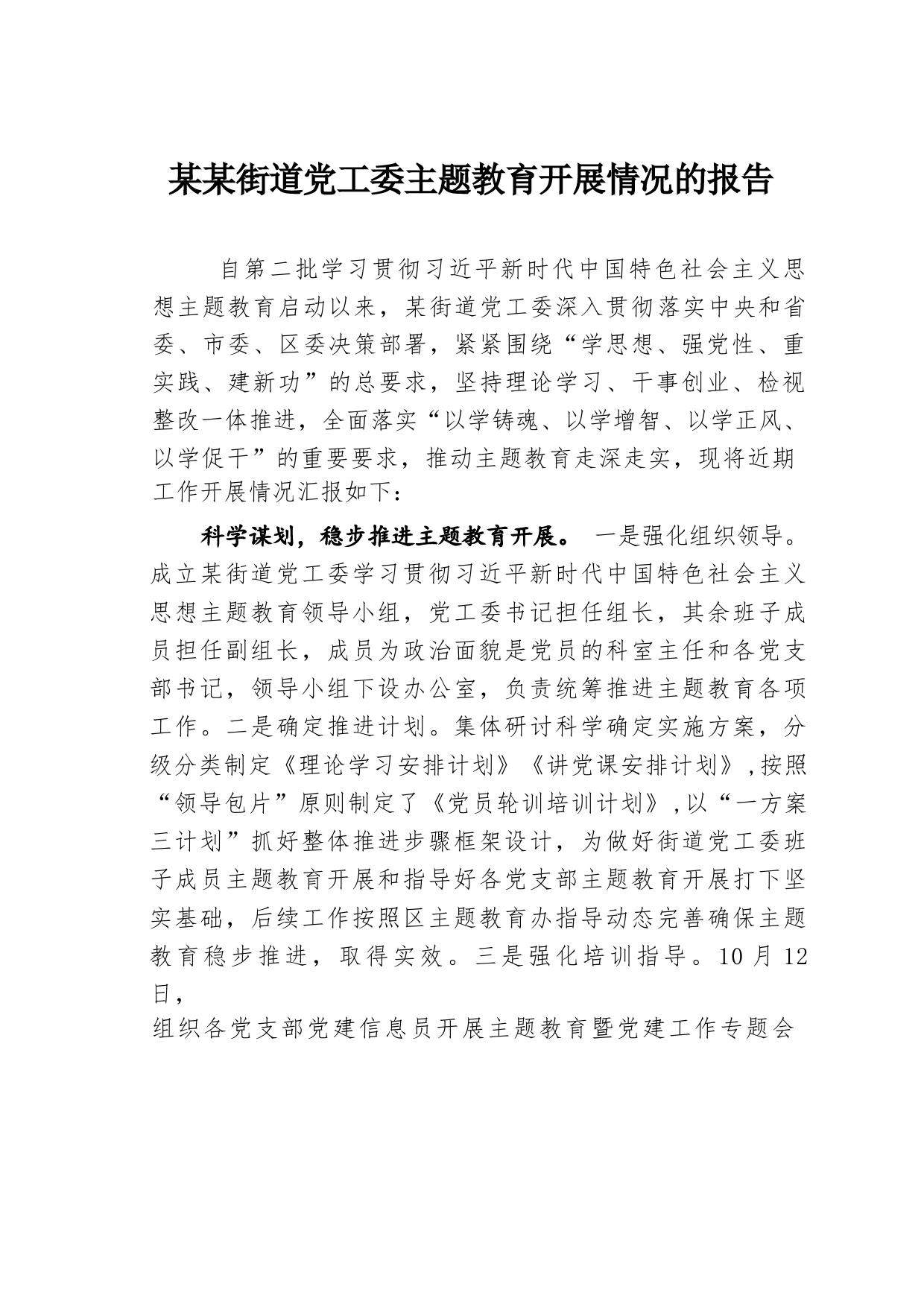 某某街道黨工委主題教育開展情況的報(bào)告VIP免費(fèi)