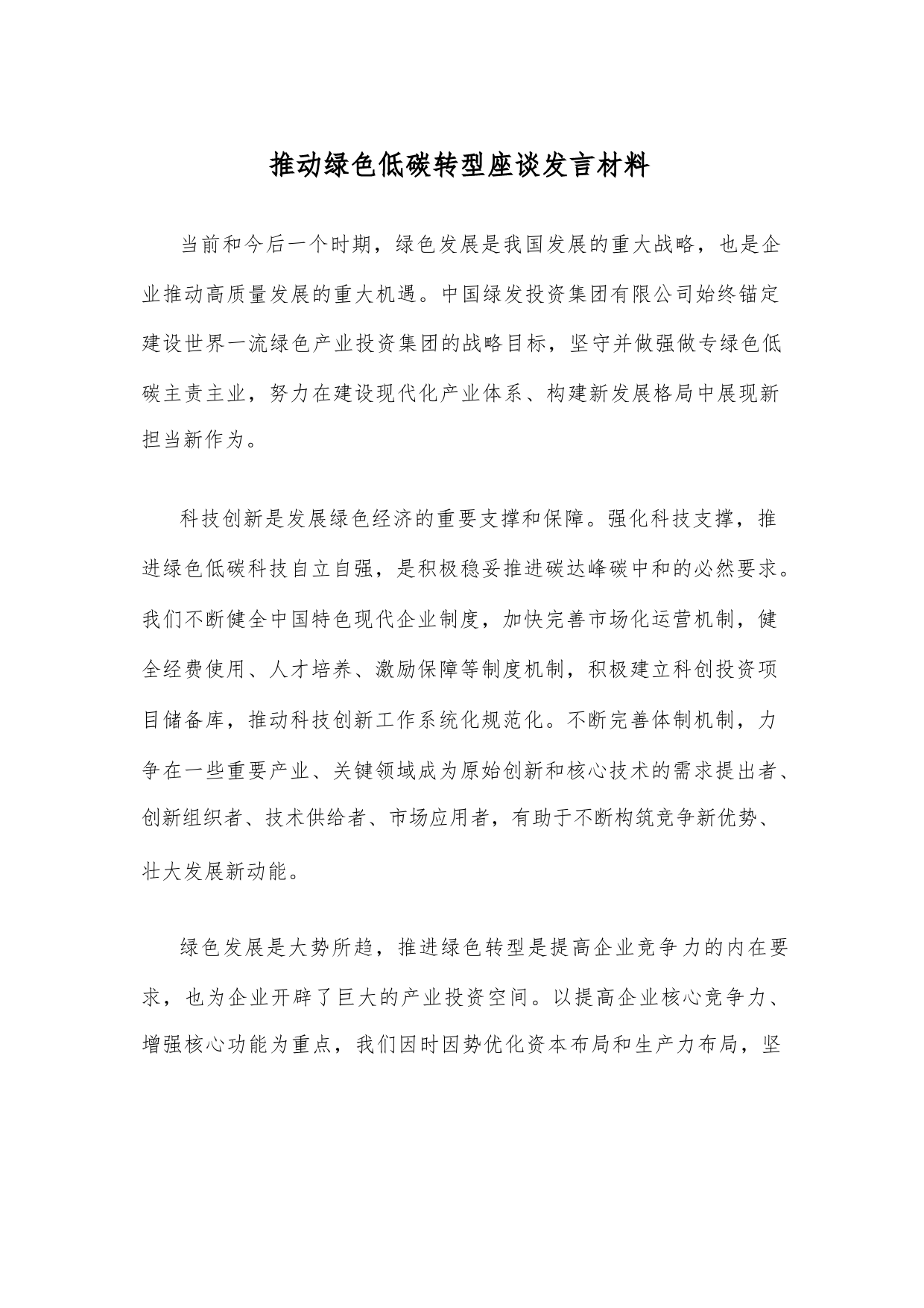 推動綠色低碳轉(zhuǎn)型座談發(fā)言材料VIP免費