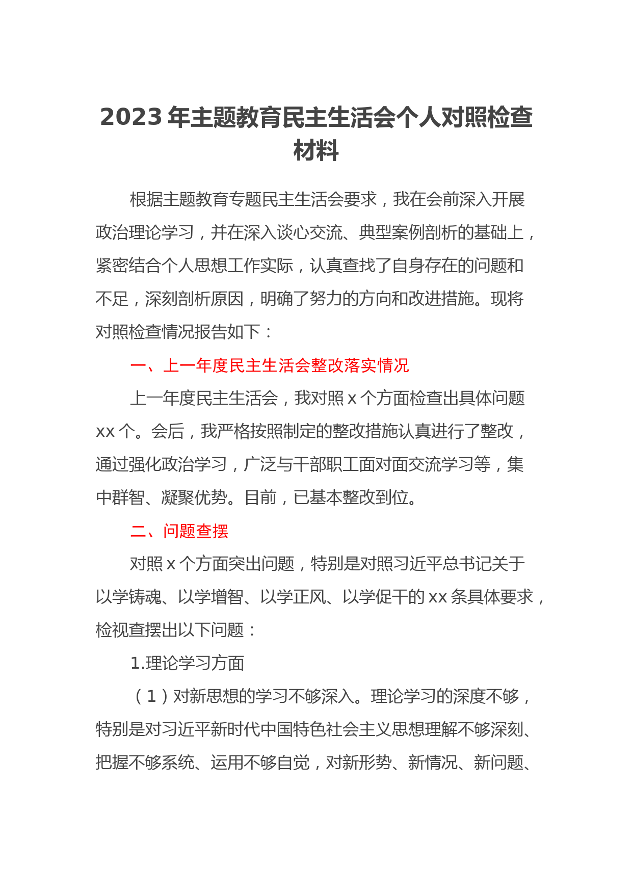 2023年主題教育民主生活會個人對照檢查材料 (5)VIP免費
