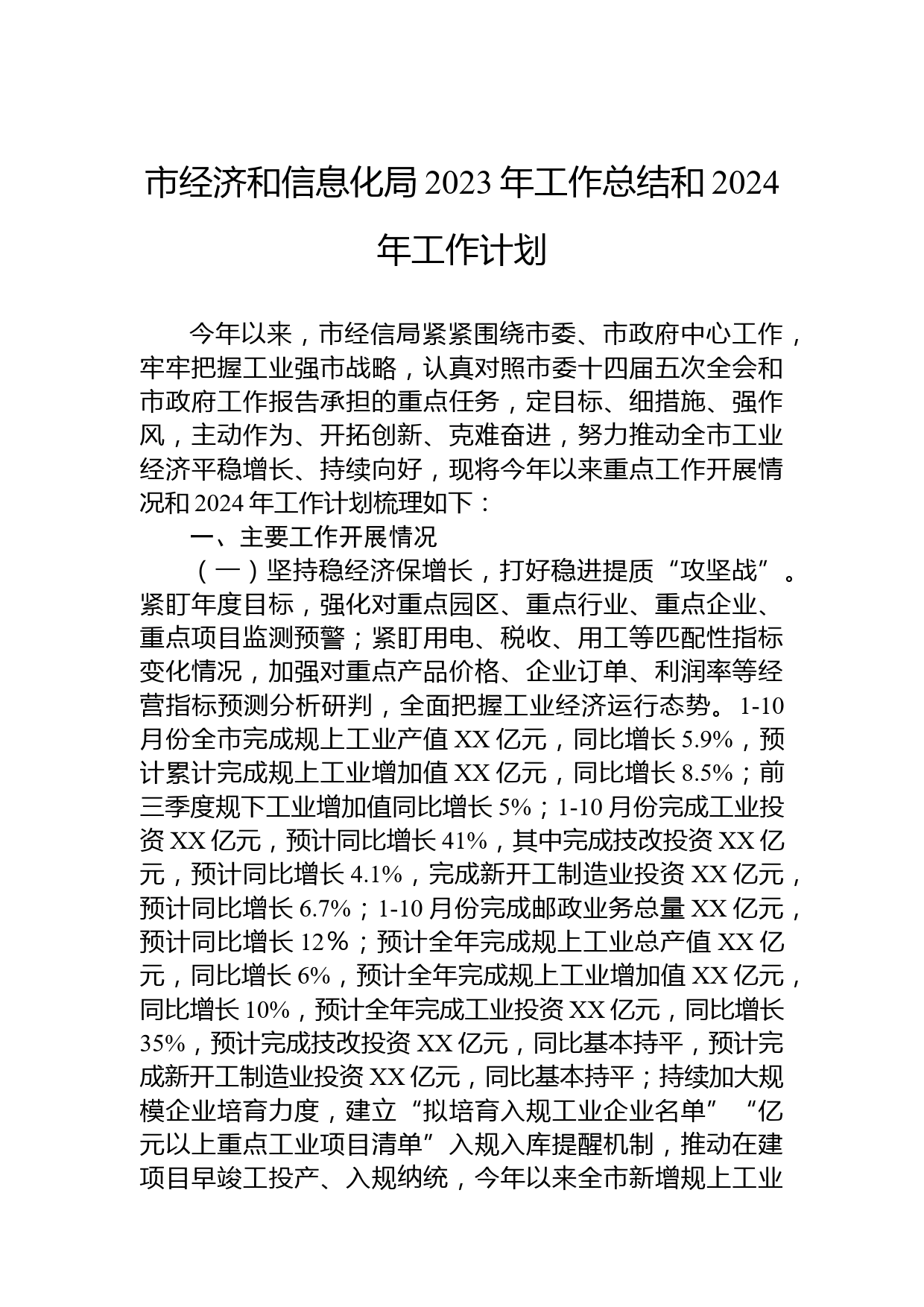 市經(jīng)濟(jì)和信息化局2023年工作總結(jié)和2024年工作計(jì)劃(20231228)VIP免費(fèi)
