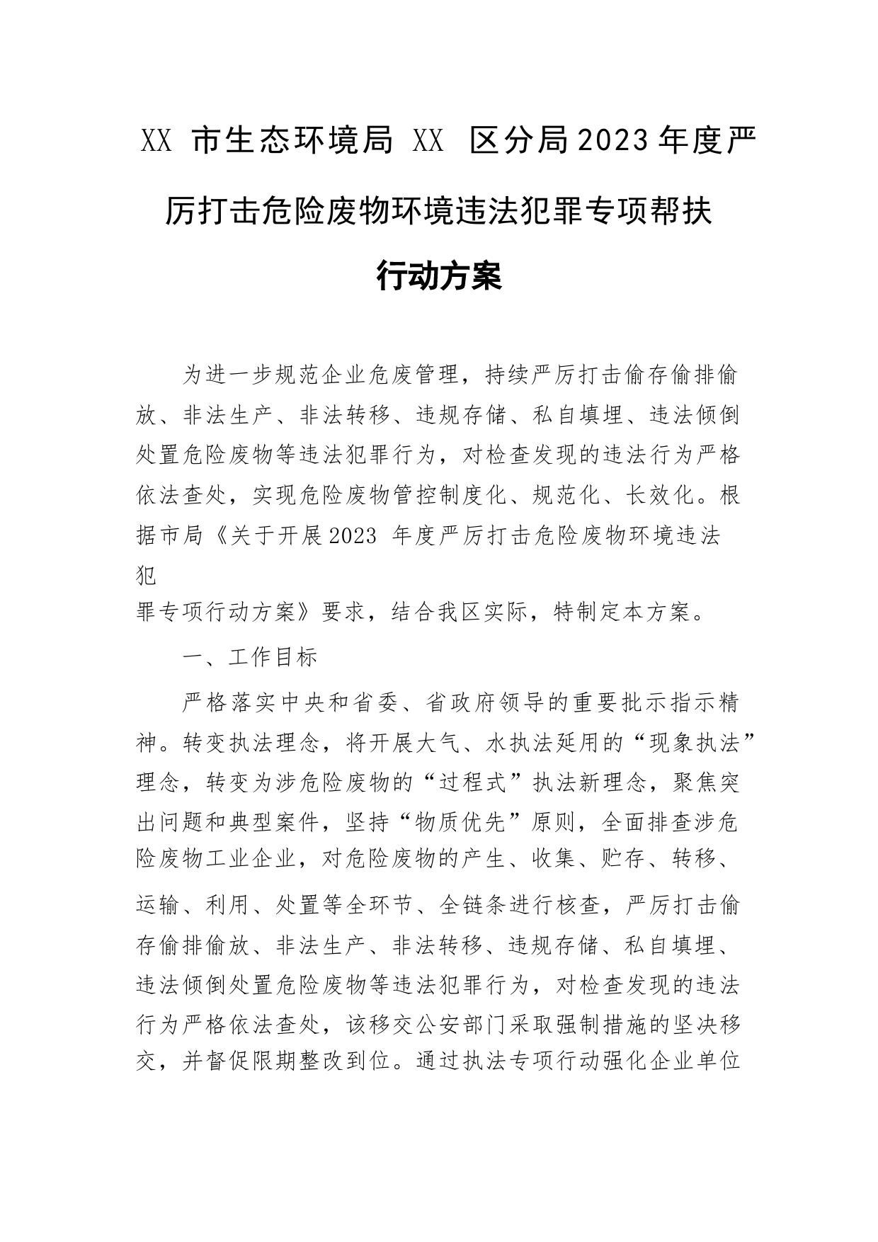 XX市生態(tài)環(huán)境局XX區(qū)分局2023年度嚴(yán)厲打擊危險(xiǎn)廢物環(huán)境違法犯罪專項(xiàng)幫扶行動(dòng)方案VIP免費(fèi)