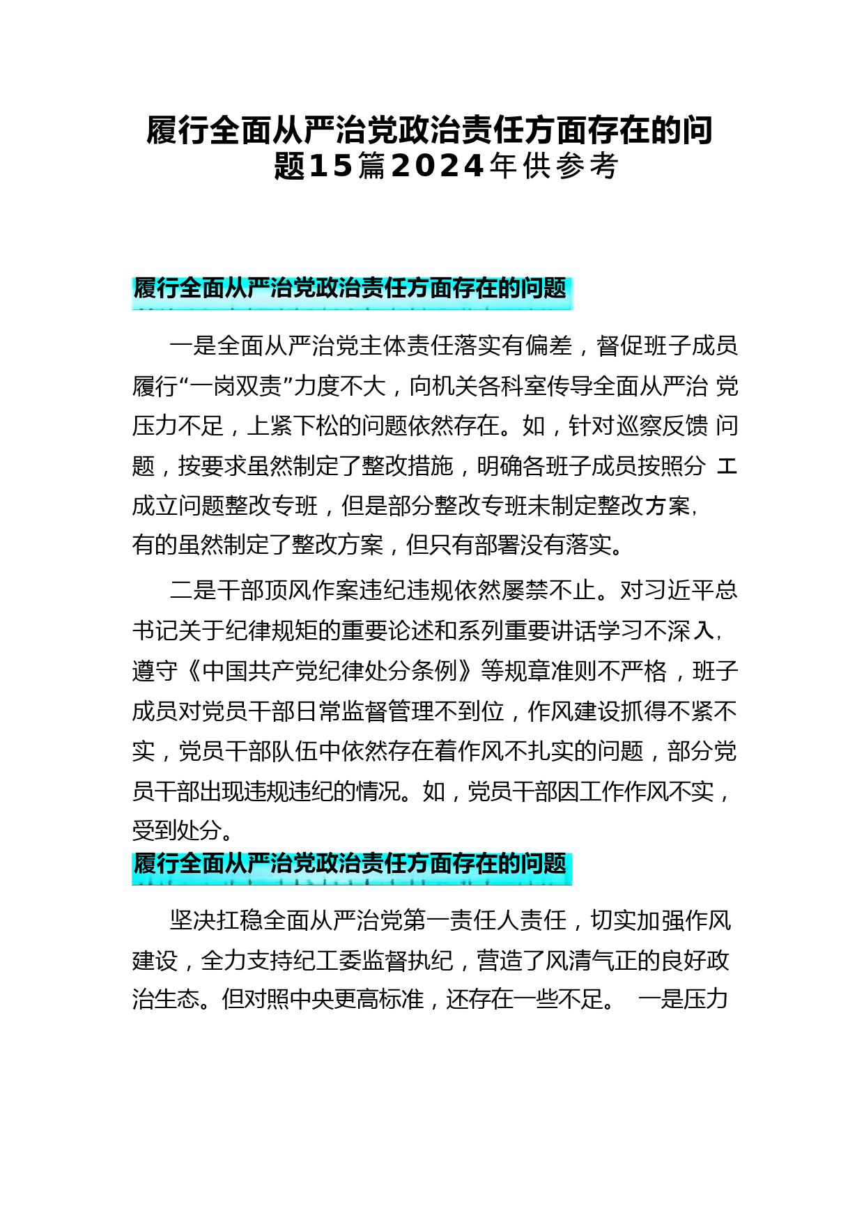 履行全面從嚴(yán)治黨治責(zé)任方面存在的問題15篇2024年供參考VIP免費