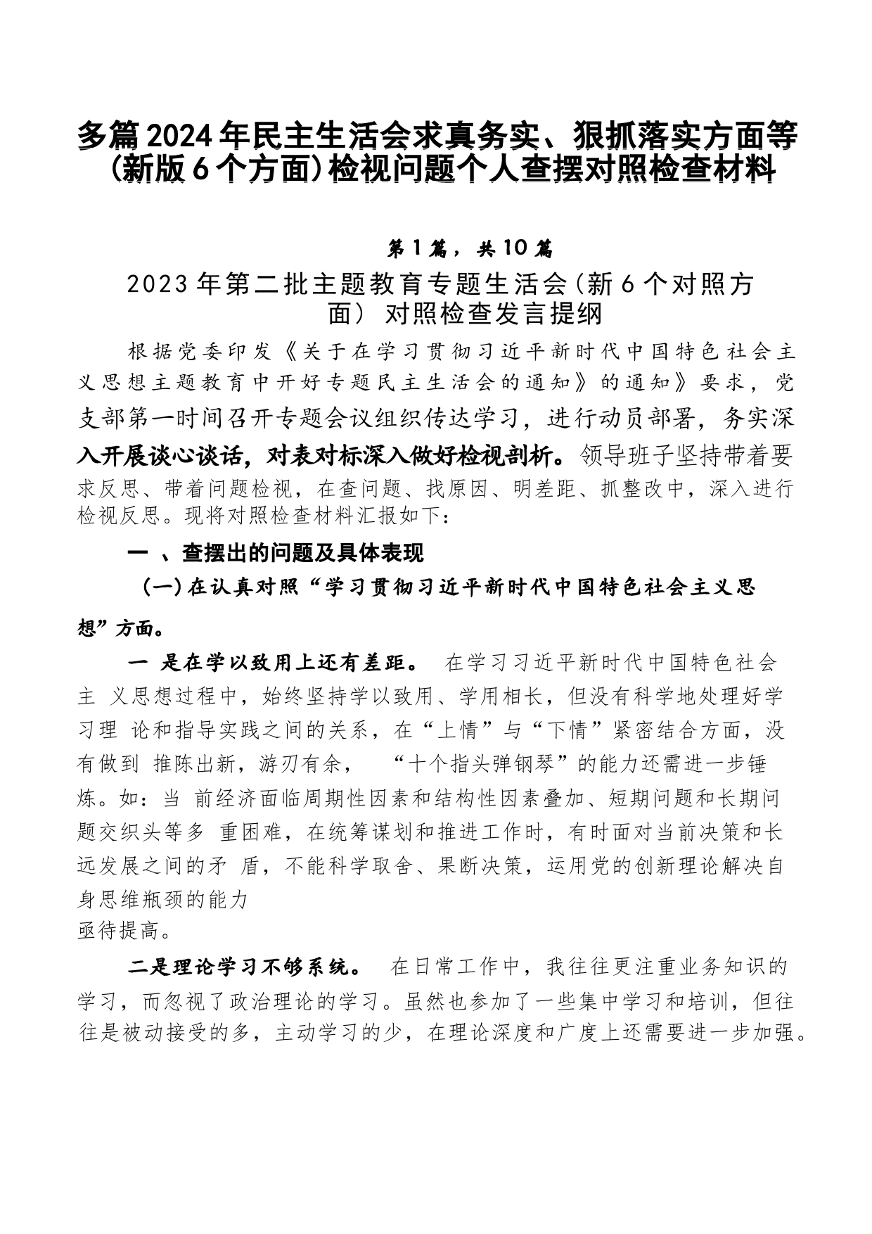 多篇2024年民主生活會求真務(wù)實、狠抓落實方面等(新版6個方面)檢視問題個人查擺對照檢查材料VIP免費