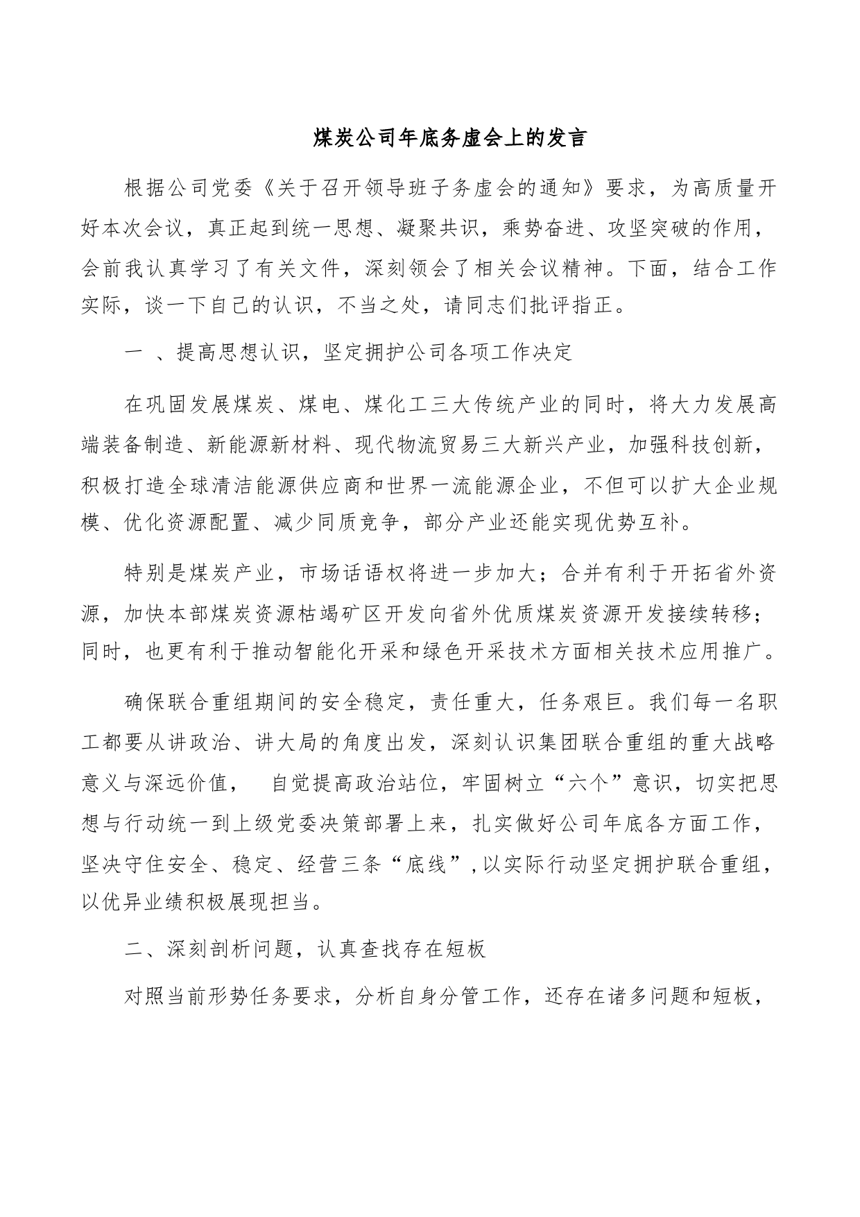 煤炭公司年底務虛會上的發(fā)言VIP免費