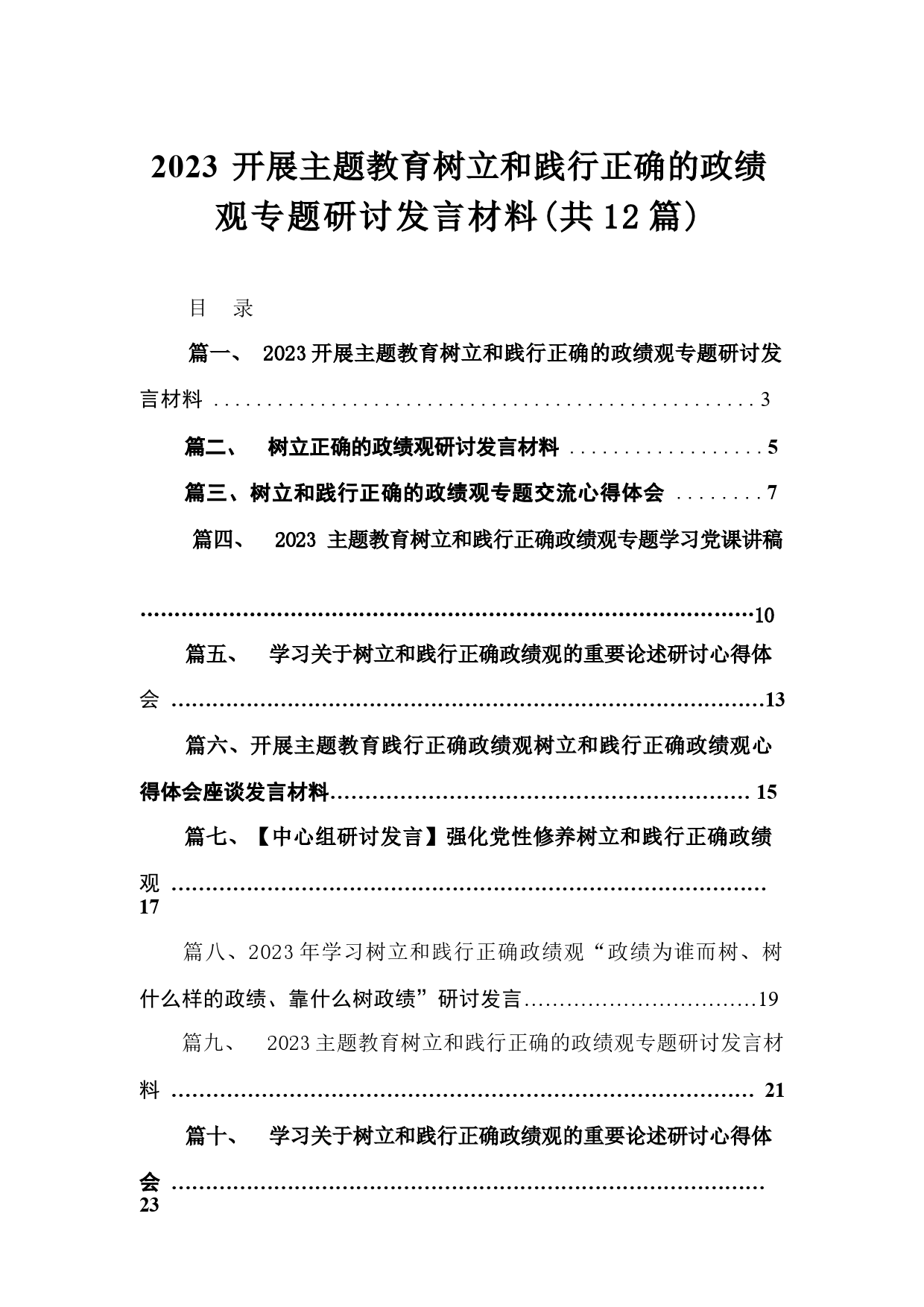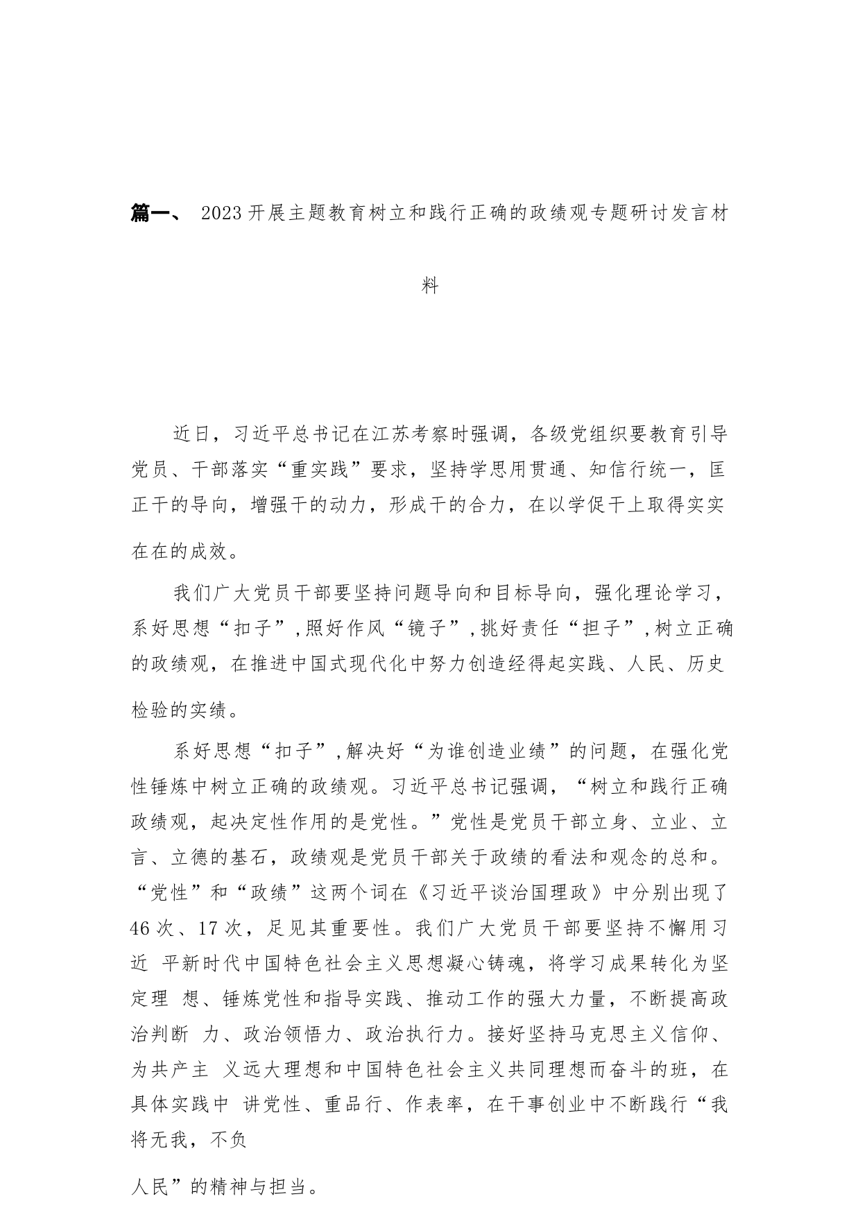 2023開(kāi)展專(zhuān)題教育樹(shù)立和踐行正確的政績(jī)觀專(zhuān)題研討發(fā)言材料精選(共12篇)VIP免費(fèi)