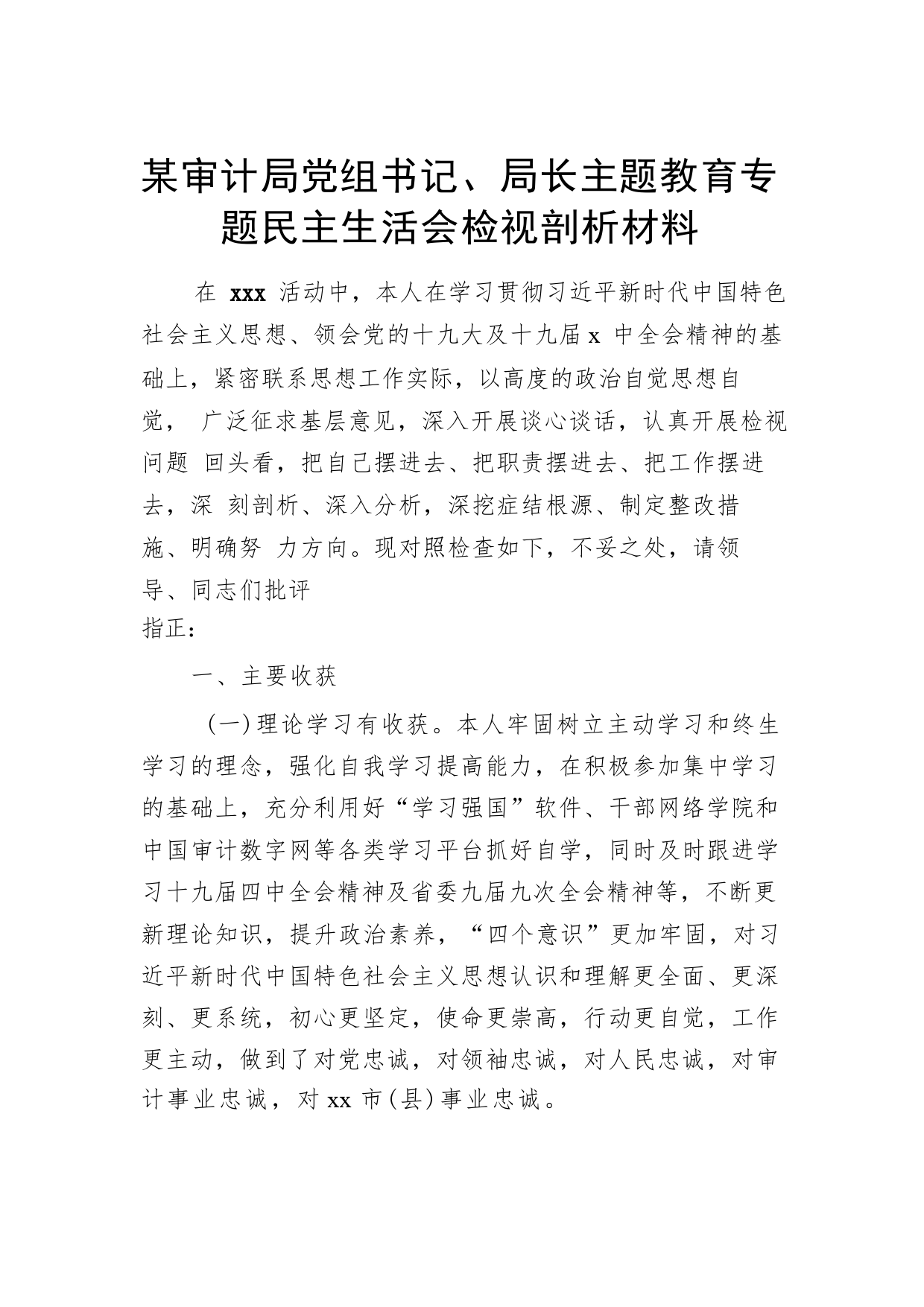 某審計(jì)局黨組書(shū)記、局長(zhǎng)主題教育專(zhuān)題民主生活會(huì)檢視剖析材料VIP免費(fèi)
