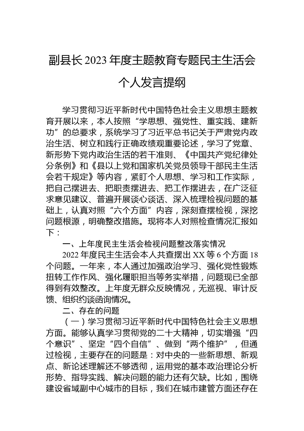 副縣長(zhǎng)2023年度主題教育專題民主生活會(huì)個(gè)人發(fā)言提綱VIP免費(fèi)