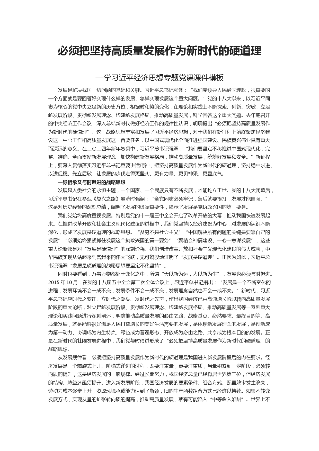 把堅(jiān)持高質(zhì)量發(fā)展作為新時(shí)代的硬道理,學(xué)習(xí)近平經(jīng)濟(jì)思想黨課課件(講稿)VIP免費(fèi)