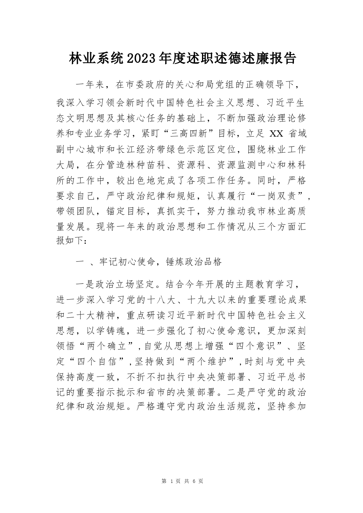林業(yè)系統(tǒng)2023年度述職述德述廉報告一年來,在市委政府的關心和局黨組的正確領導下,我深入學習領會新時代中國特色社會主義思想、習近平生態(tài)文明思想及其核心任務的基礎上,不斷加強政治理論修養(yǎng)和專業(yè)業(yè)務學習,緊盯“三高四新”目標,立足XX省域副中心城市和長江經(jīng)濟帶綠色示范區(qū)定位,圍繞林業(yè)工作大局,在分管造林種苗科、資源科、資源監(jiān)測中心和林科所的工作中,較出色地完成了各項工作任務。同時,嚴格要求自己,嚴守政治紀律和規(guī)矩,認真履行“一崗雙責”,帶領團隊,錨定目標,真抓實干,努力推動我市林業(yè)高質量發(fā)展。現(xiàn)將一年來的政治思想和工作情況從三個方面匯...