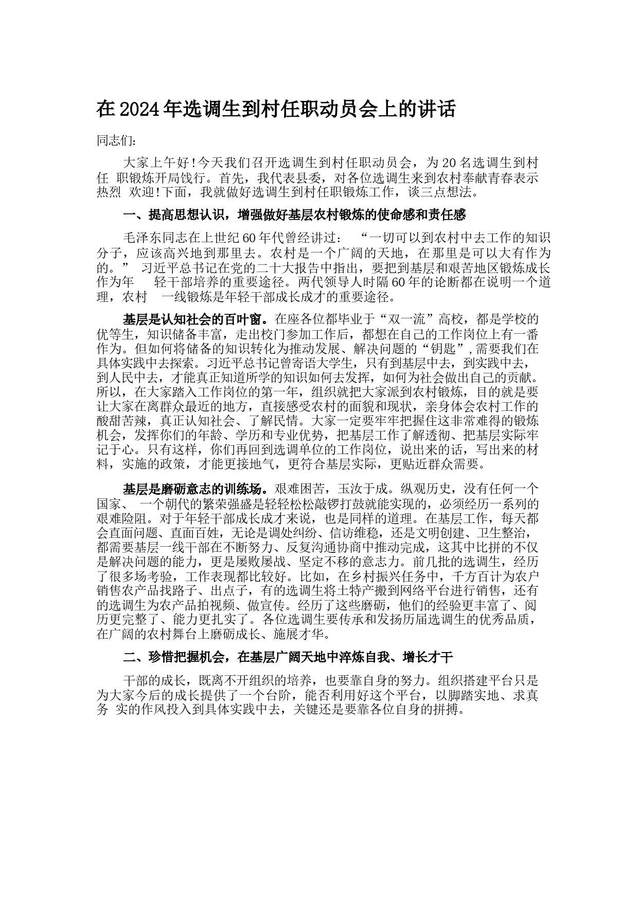 在2024年選調(diào)生到村任職動(dòng)員會(huì)上的講話VIP免費(fèi)
