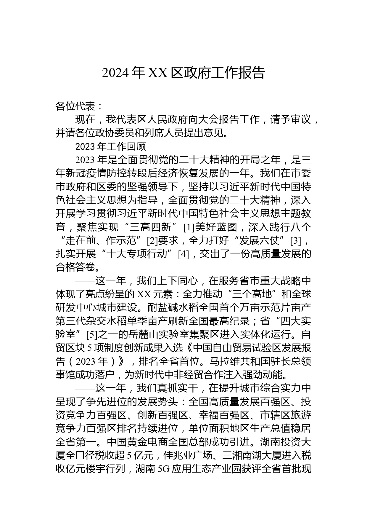 2024年XX區(qū)政府工作報(bào)告(20240117) (1)VIP免費(fèi)