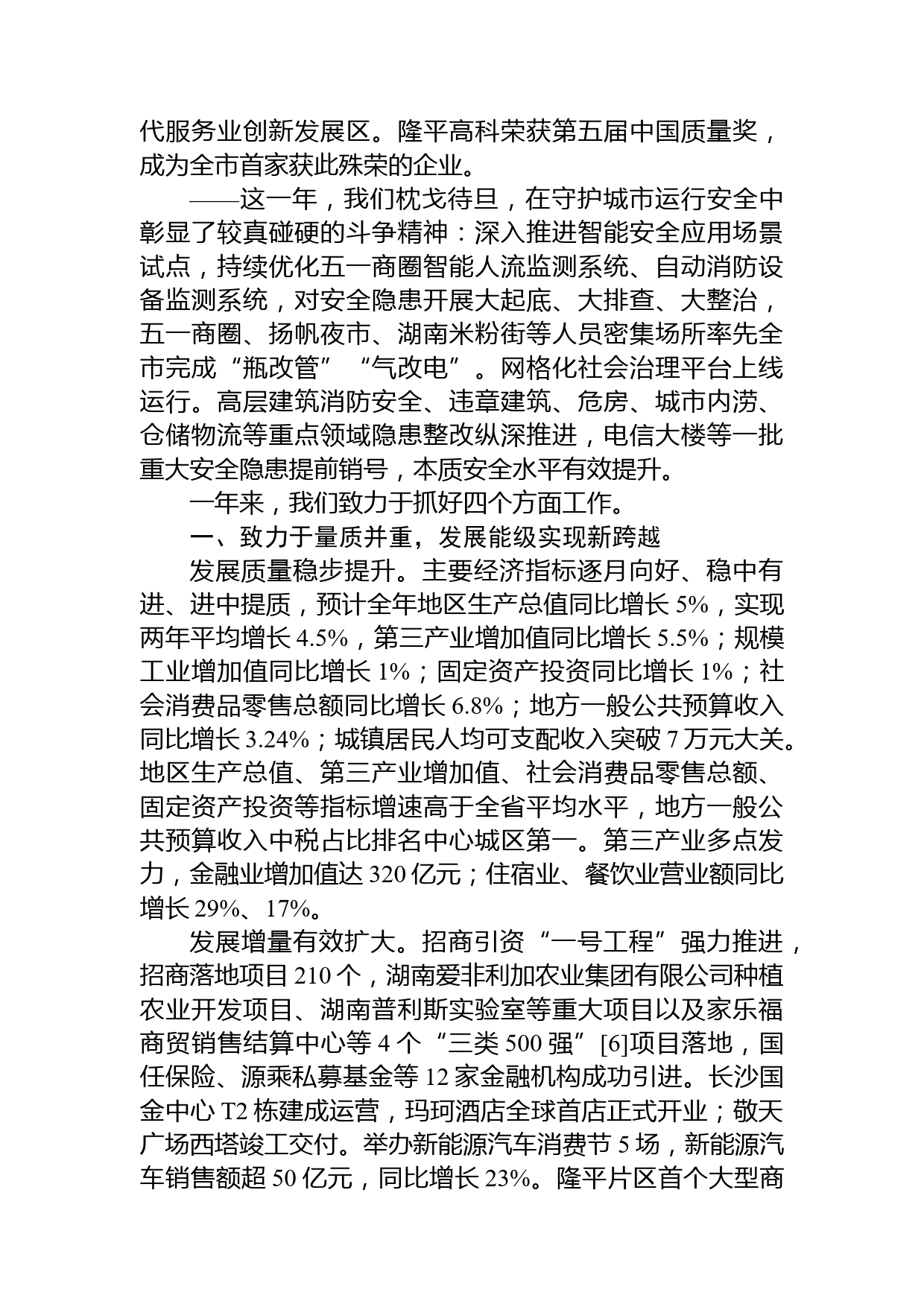 2024年XX區(qū)政府工作報(bào)告各位代表:現(xiàn)在,我代表區(qū)人民政府向大會(huì)報(bào)告工作,請(qǐng)予審議,并請(qǐng)各位政協(xié)委員和列席人員提出意見。2023年工作回顧2023年是全面貫徹黨的二十大精神的開局之年,是三年新冠疫情防控轉(zhuǎn)段后經(jīng)濟(jì)恢復(fù)發(fā)展的一年。我們?cè)谑形姓蛥^(qū)委的堅(jiān)強(qiáng)領(lǐng)導(dǎo)下,堅(jiān)持以習(xí)近平新時(shí)代中國特色社會(huì)主義思想為指導(dǎo),全面貫徹黨的二十大精神,深入開展學(xué)習(xí)貫徹習(xí)近平新時(shí)代中國特色社會(huì)主義思想主題教育,聚焦實(shí)現(xiàn)“三高四新”[1]美好藍(lán)圖,深入踐行八個(gè)“走在前、作示范”[2]要求,全力打好“發(fā)展六仗”[3],扎實(shí)開展“十大專項(xiàng)行動(dòng)”[4],交出了一份高質(zhì)量發(fā)展的合...