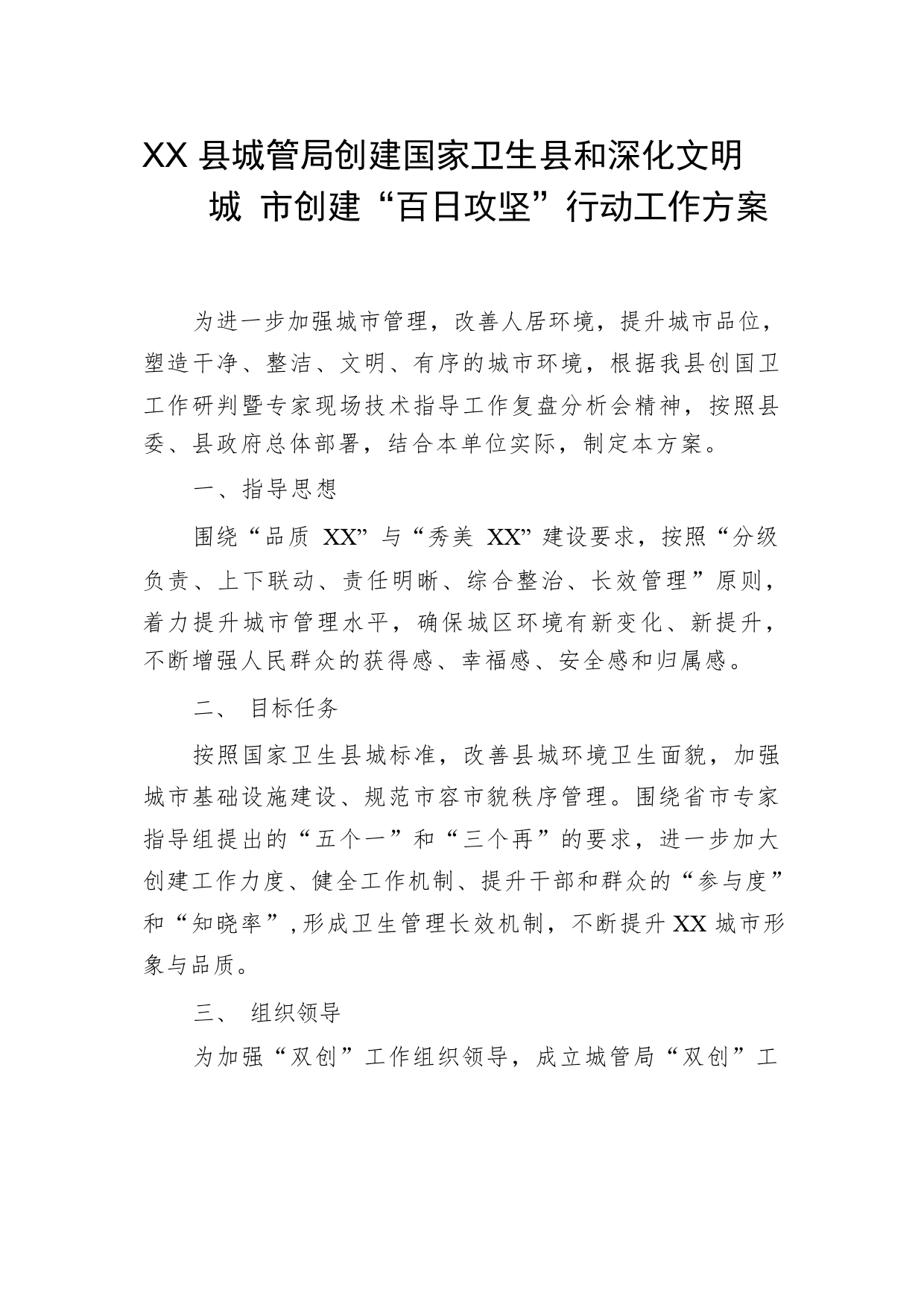 XX縣城管局創(chuàng)建國家衛(wèi)生縣和深化文明城市創(chuàng)建“百日攻堅”行動工作方案VIP免費